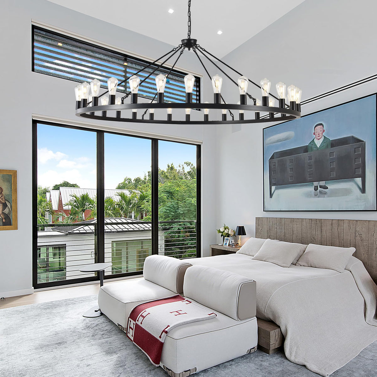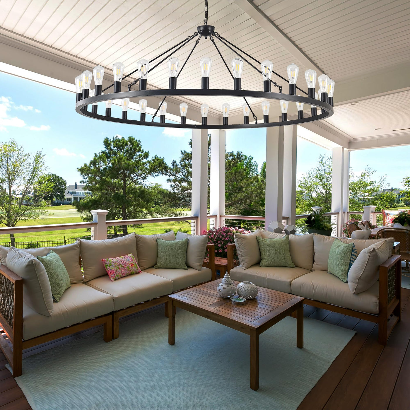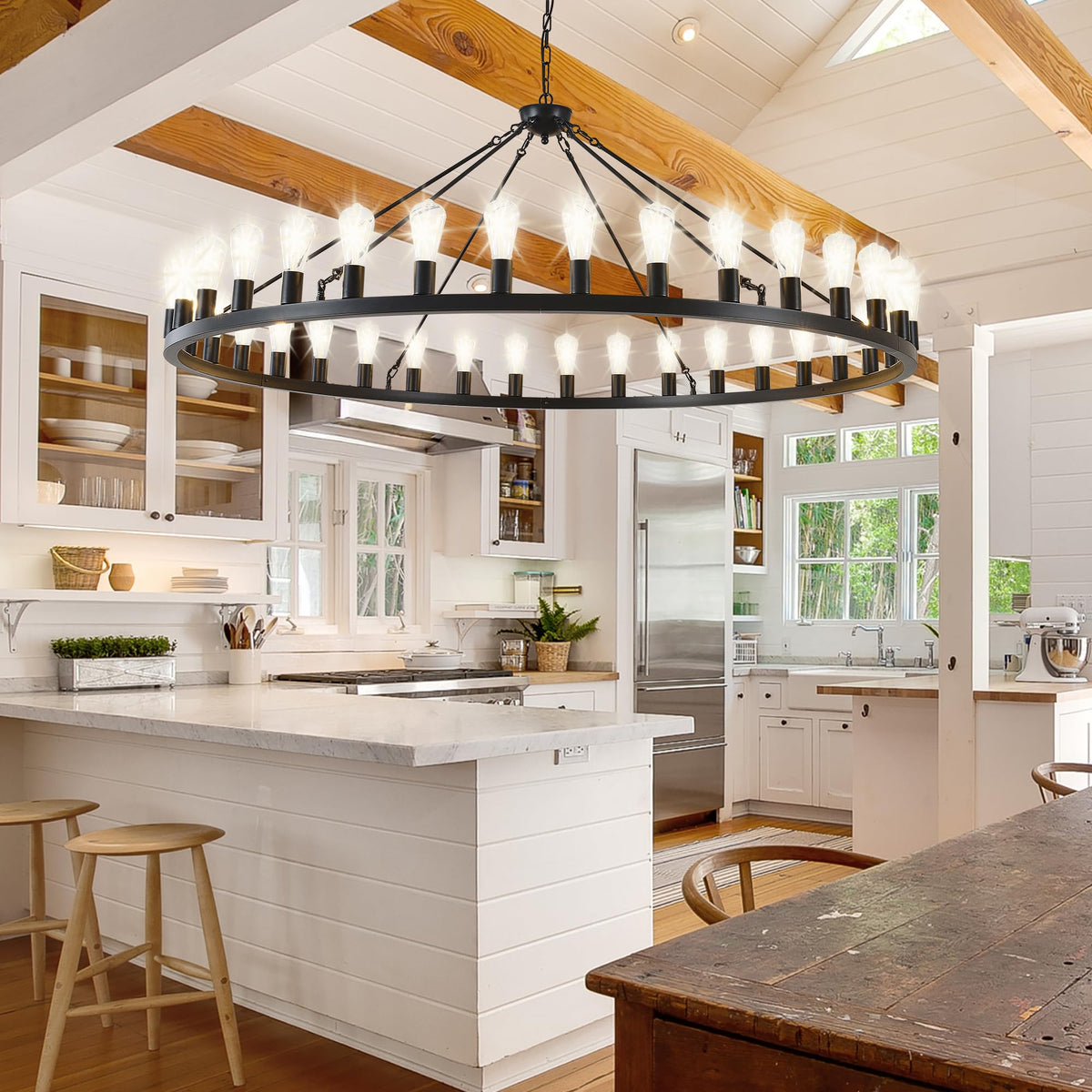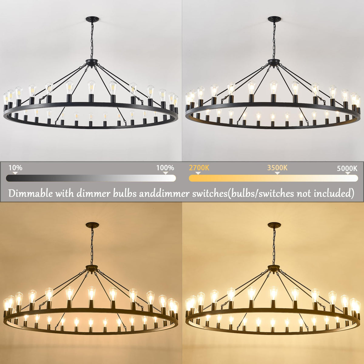 Zbmyrbzj Large Black Wagon Wheel Chandelier 64 Inch,30-Light Farmhouse Wagon Wheel Chandeliers Round Industrial Ceiling Light Fixtures For Outdoor Porch High Ceilings Living Dining Room Foyer Entryway