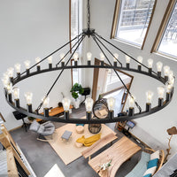 Zbmyrbzj Large Black Wagon Wheel Chandelier 64 Inch,30-Light Farmhouse Wagon Wheel Chandeliers Round Industrial Ceiling Light Fi
