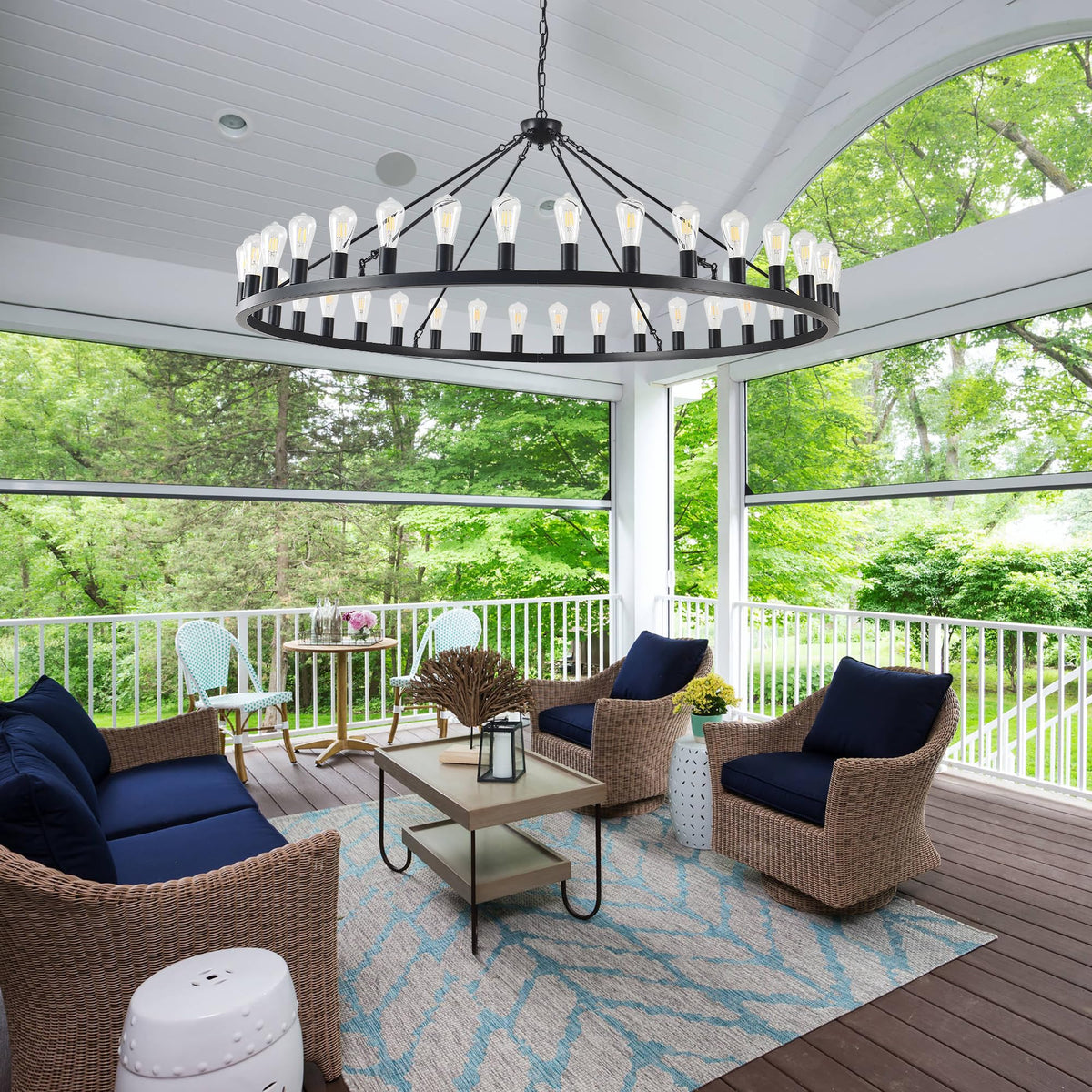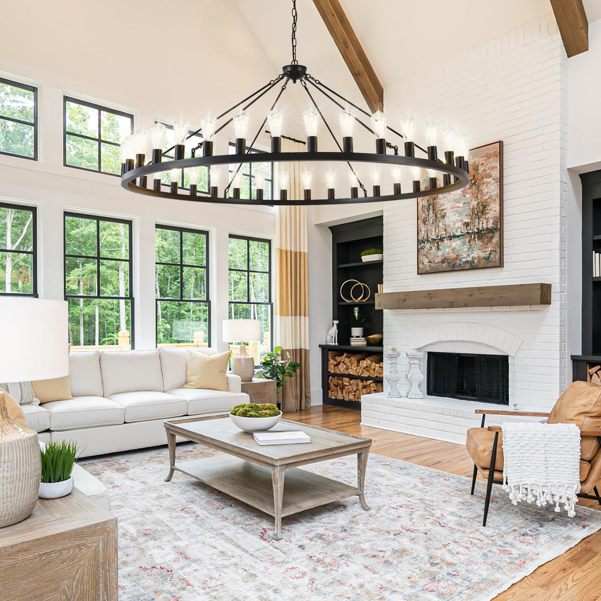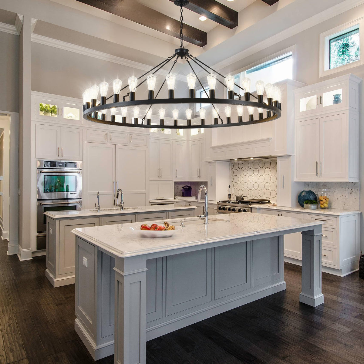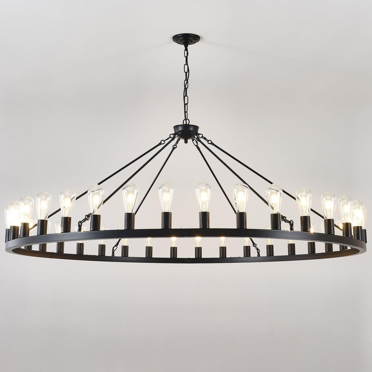 ZBMYRBZJ Large black wagon wheel chandelier 64 inch,36-Light Farmhouse wagon Wheel Chandeliers Round Industrial ceiling light fixtures for outdoor porch high ceilings Living Dining Room Foyer Entryway