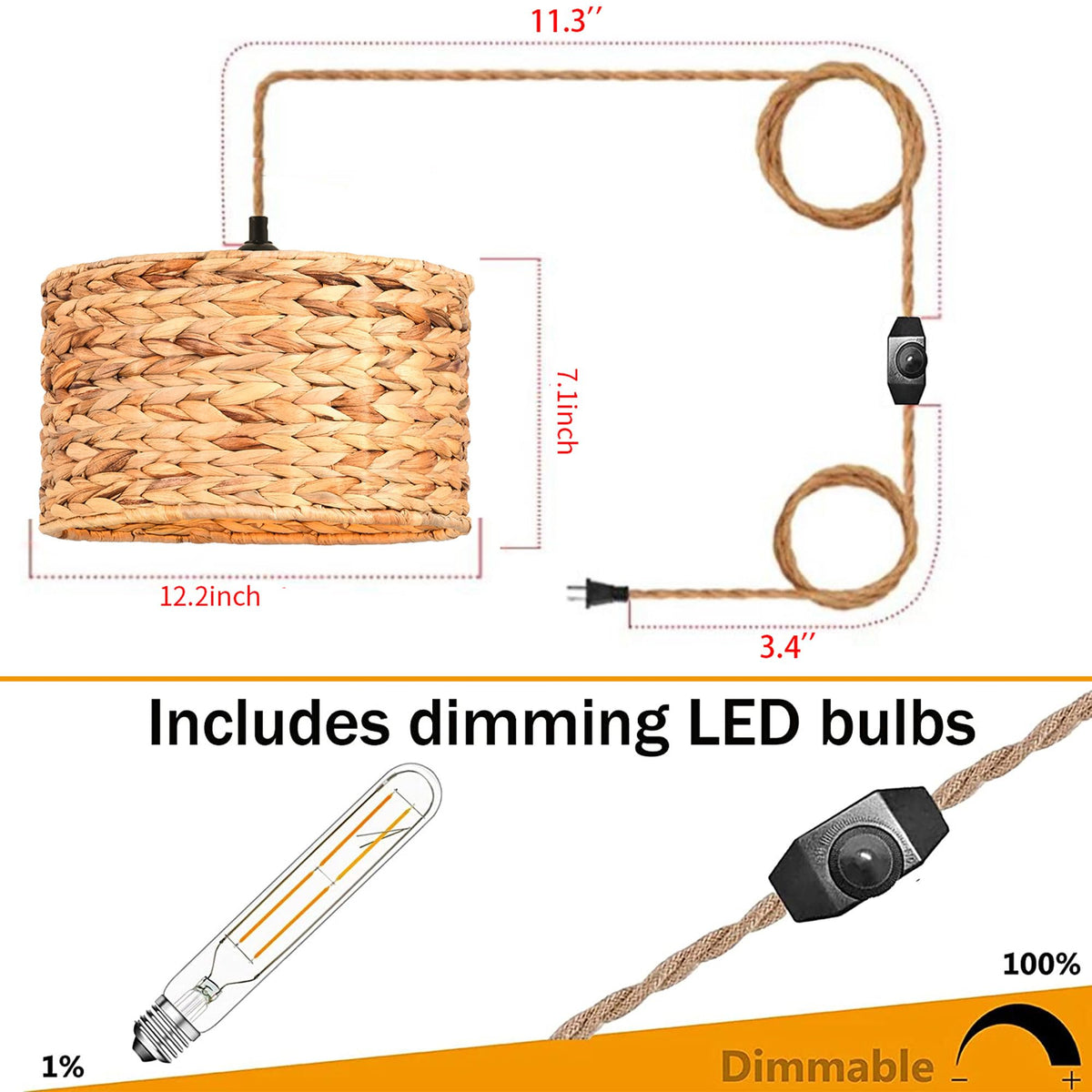 Q: Is the dimmable bulb included with the pendant light?A: Yes, the ZECOXOL Rattan Plug in Pendant Light comes with a dimmable LED bulb included, so you won't need to purchase an additional bulb separately.