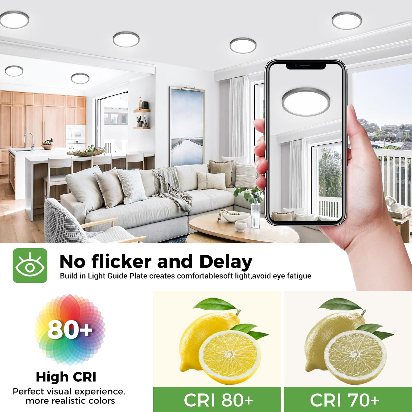 Q: Are the Zemty LED lights safe for eye health?A: Yes, the Zemty LED Flush Mount Ceiling Lights provide flicker-free and blue light-free lighting, prioritizing eye health and comfort. With a high Color Rendering Index (CRI) of over 80, they ensure vibrant and authentic lighting while minimizing potential eye strain.