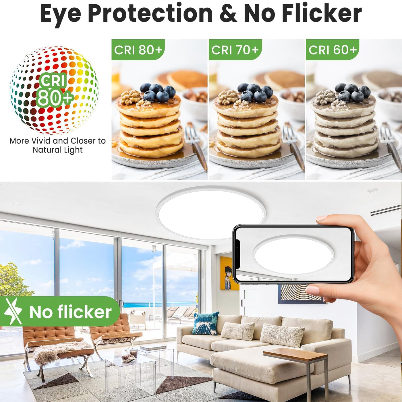 This LED ceiling light features a super slim profile, allowing it to fit effortlessly in low ceiling areas. Constructed from well-made plastic, it is both lightweight and durable, ensuring long-lasting performance. With the ability to deliver three different color temperatures—cool white, natural white, and warm white—users can easily adjust the brightness to suit their mood and activities. This flexibility makes it perfect for various settings, from kitchens and bathrooms to bedrooms and living rooms.