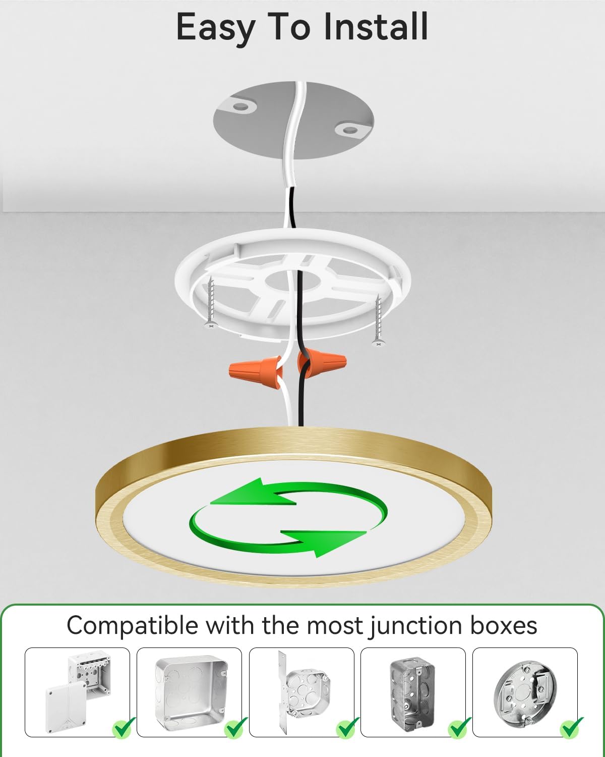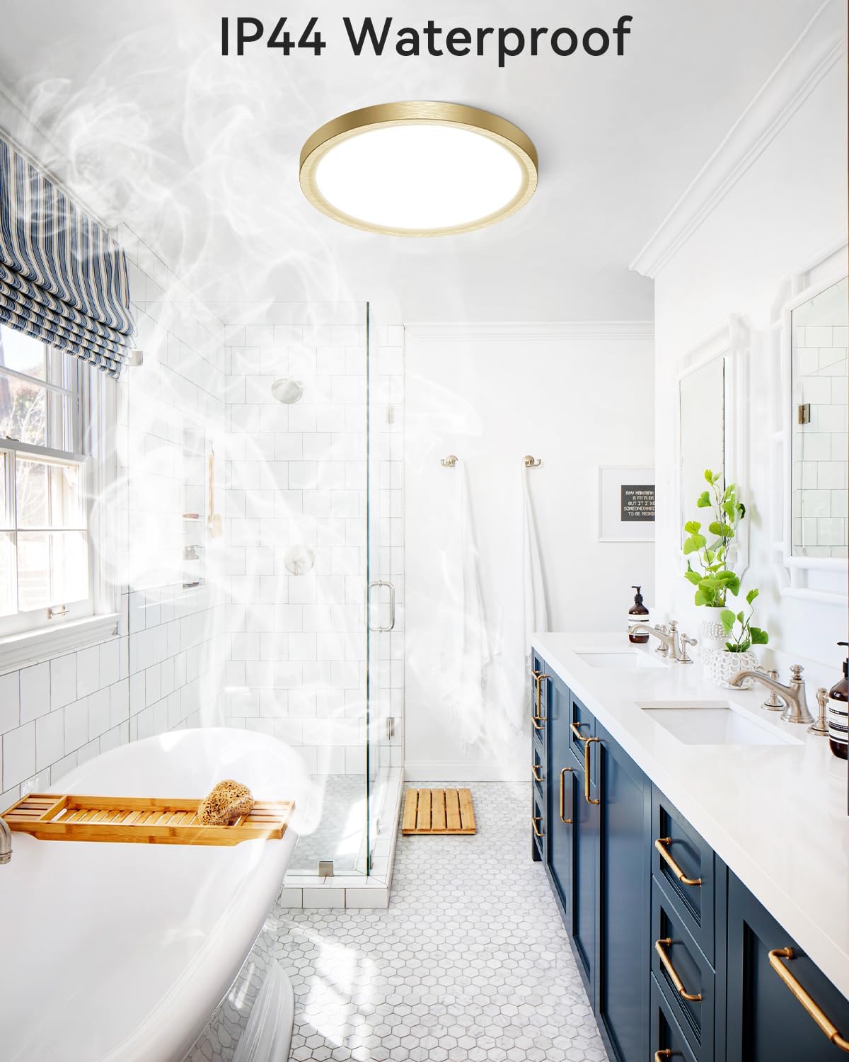 The Ultra-Slim And Elegant Flush Mount Led Brushed Gold Will Look Great In Any Type Of Interior Design, Modern, Contemporary, Or Traditional. This Modern Gold Ceiling Light Is Ideal For Small To Medium-Sized Rooms Because Of Its 12-Inch Diameter.The Gold Light Fixtures Is Excellent For Providing Either A Soft, Comforting Glow For Relaxing Or A Bright, Energizing Light For Task-Oriented Activities.Compared To Conventional Incandescent Lights, Brass Led Light Fixture Can Save Up To 90% On Energy Use, Which Will Result In A Noticeable Decrease In Your Electricity Bills. Enjoy The Vivid And Bright Lighting Without Feeling Guilty About Using Too Much Energy Thanks To Its Low Energy Consumption.Furthermore,Semi Flush Mount Metallic Golden Light Is Made To Last Up To 50,000 Hours, Assuring A Durable And Dependable Lighting Option For Many Years To Come.The Gold Round Ceiling Flash Light Promises To Provide Brilliant, Uniform Lighting Even Throughout The Entire Space, Whether You Need It To Brighten Kitchen, Bathroom,Shower Room. The Surface Mount Of Gold Design Makes It Installation Simple.You May Operate Your Lighting Solution With Confidence Because It Is Ul/Etl Listed For Safe Operation.Three Distinct Color Temperatures Are Available With Our Gold Brushed Led Ceiling Light: Warm White, Natural White, And Cool White. Just Switch Between These Settings To Create A Lovely Atmosphere For Any Event. 1. 3000K Warm White - Fit For Users Who Want Gentle Brightness 2. 4500K Neutral White - Fit For Users Who Expect Daylight White Brightness. 3500K Daylight White - Fit For Users Who Want Higher Brightness When Studying And Working.