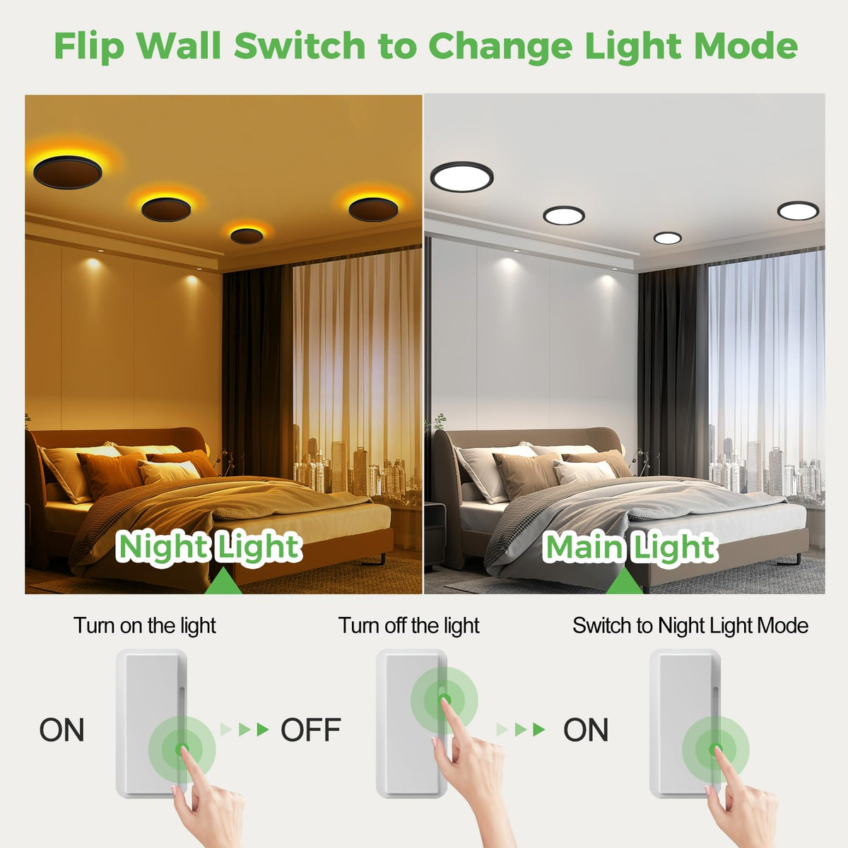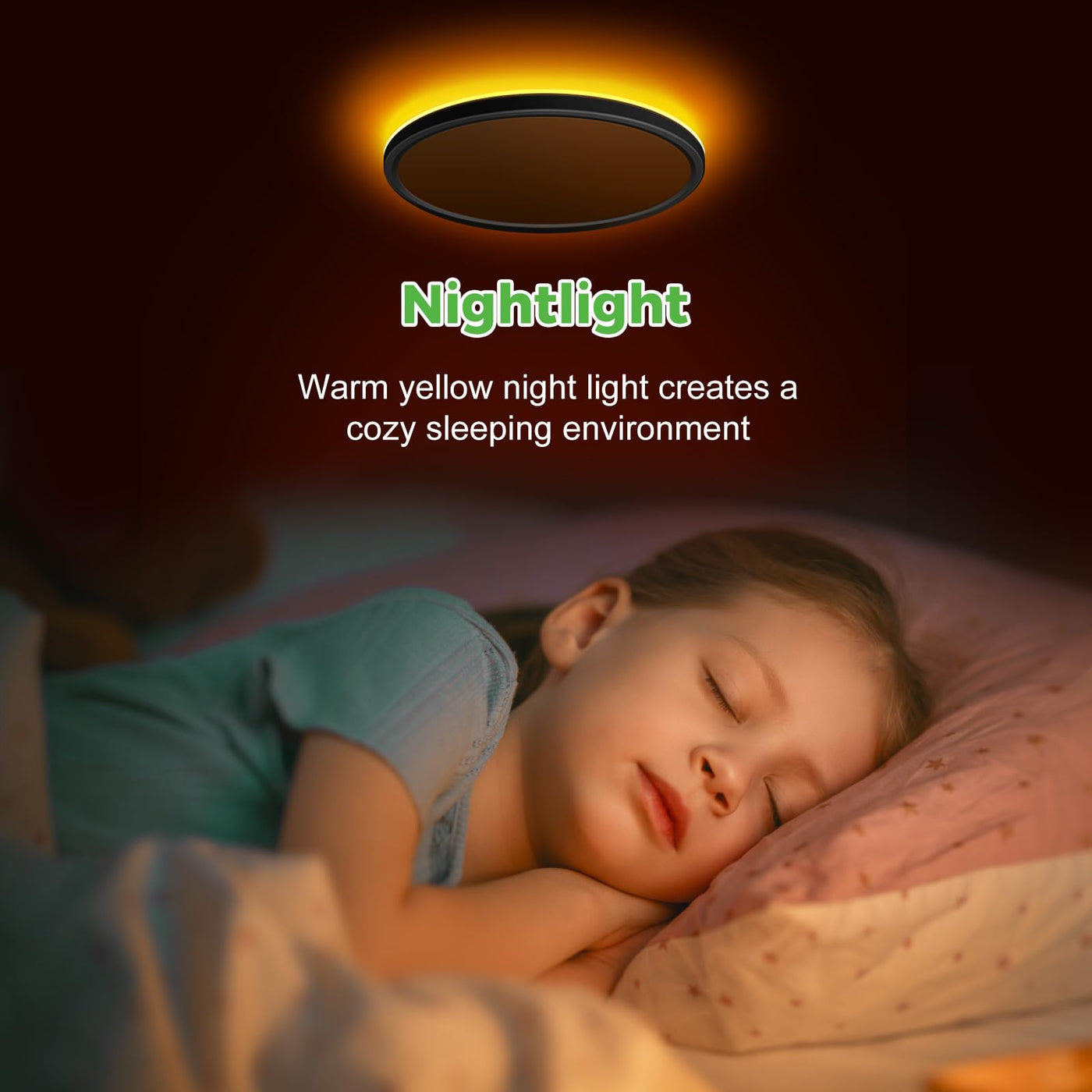 Zemty 7 Inch Flush Mount Ceiling Light Fixture With Night Light 1800K, 3000K/4000K/6500K Selectable Ceiling Lights, Low Profile