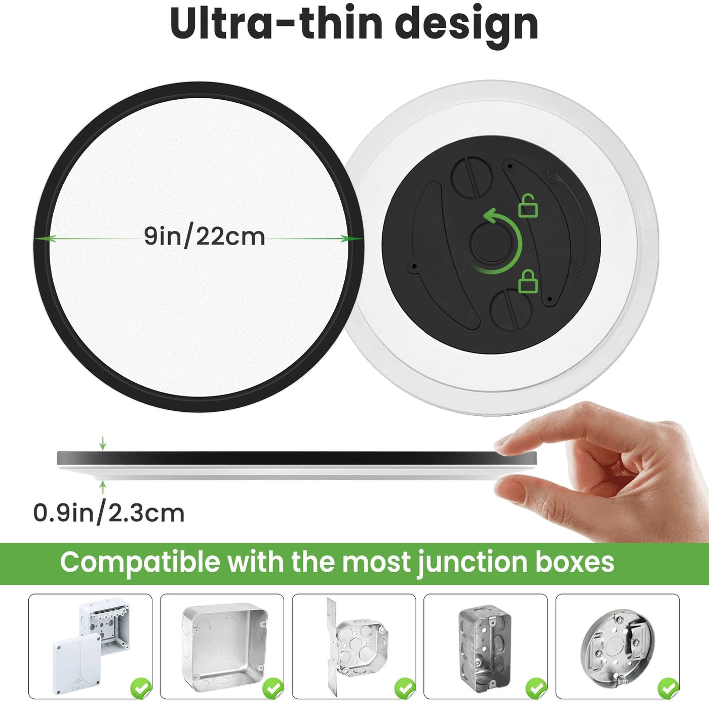 Q: What type of rooms is the zemty Black Ceiling Light suitable for?A: This ceiling light is designed for a wide range of applications, including bathrooms, closets, pantries, hallways, and other low-ceiling spaces. Its ultra-slim profile, less than 1 inch thick, makes it ideal for tight areas.