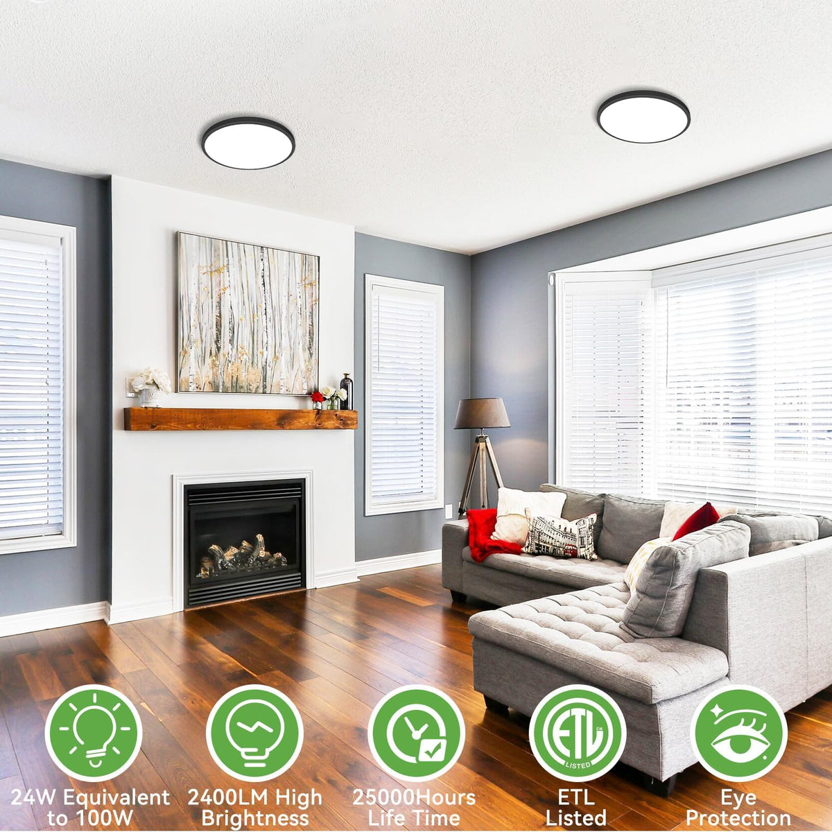 Q: Is the zemty Black Ceiling Light energy-efficient?A: Yes, this light fixture is highly energy-efficient. It uses only 24W of power while producing 2400 lumens of brightness, equivalent to a traditional 200W four-bulb light, resulting in up to 90% energy savings.