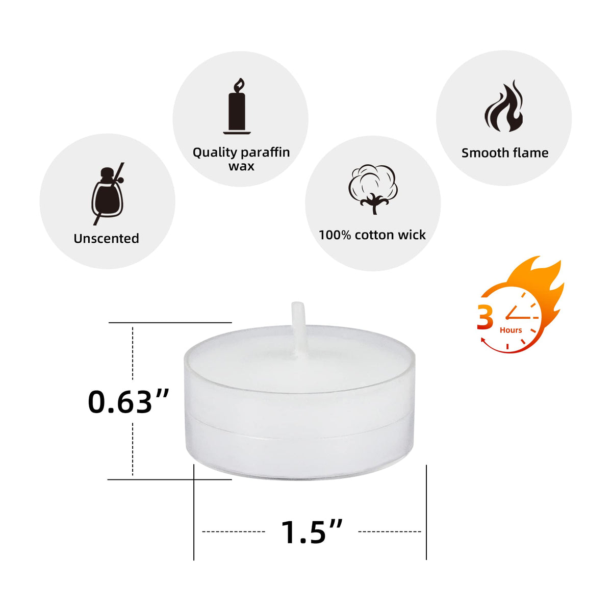 Q: How many tealight candles are included in a box?A: Each box contains 50 tealight candles, providing great value for various occasions.