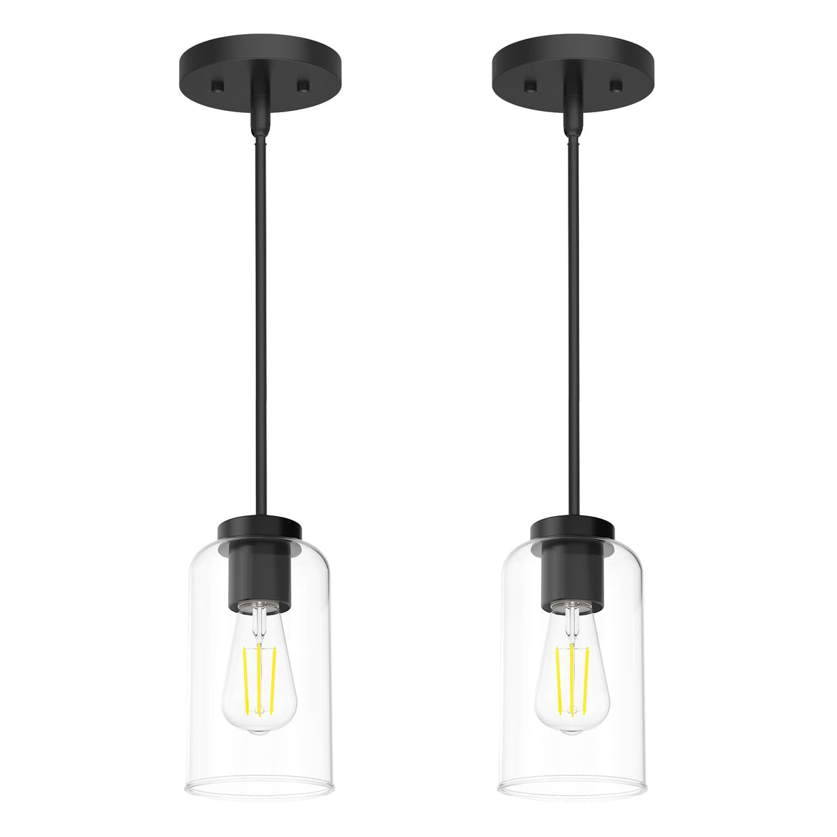 Zevluck 2-Pack Pendant Light, Matte Black Pendant Lighting With 5 Adjustable Tubes, Hanging Light Fixtures With Clear Glass Shad