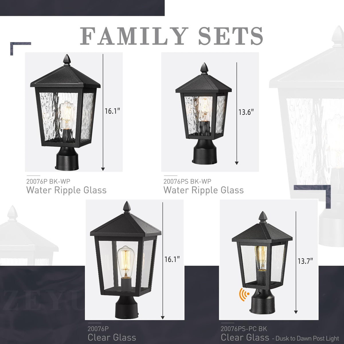 Zeyu Exterior Post Lantern Light, 20076Ps Bk-Wp. Dimensions: Light Fixture: 6''L X 6''W X 13.6''H