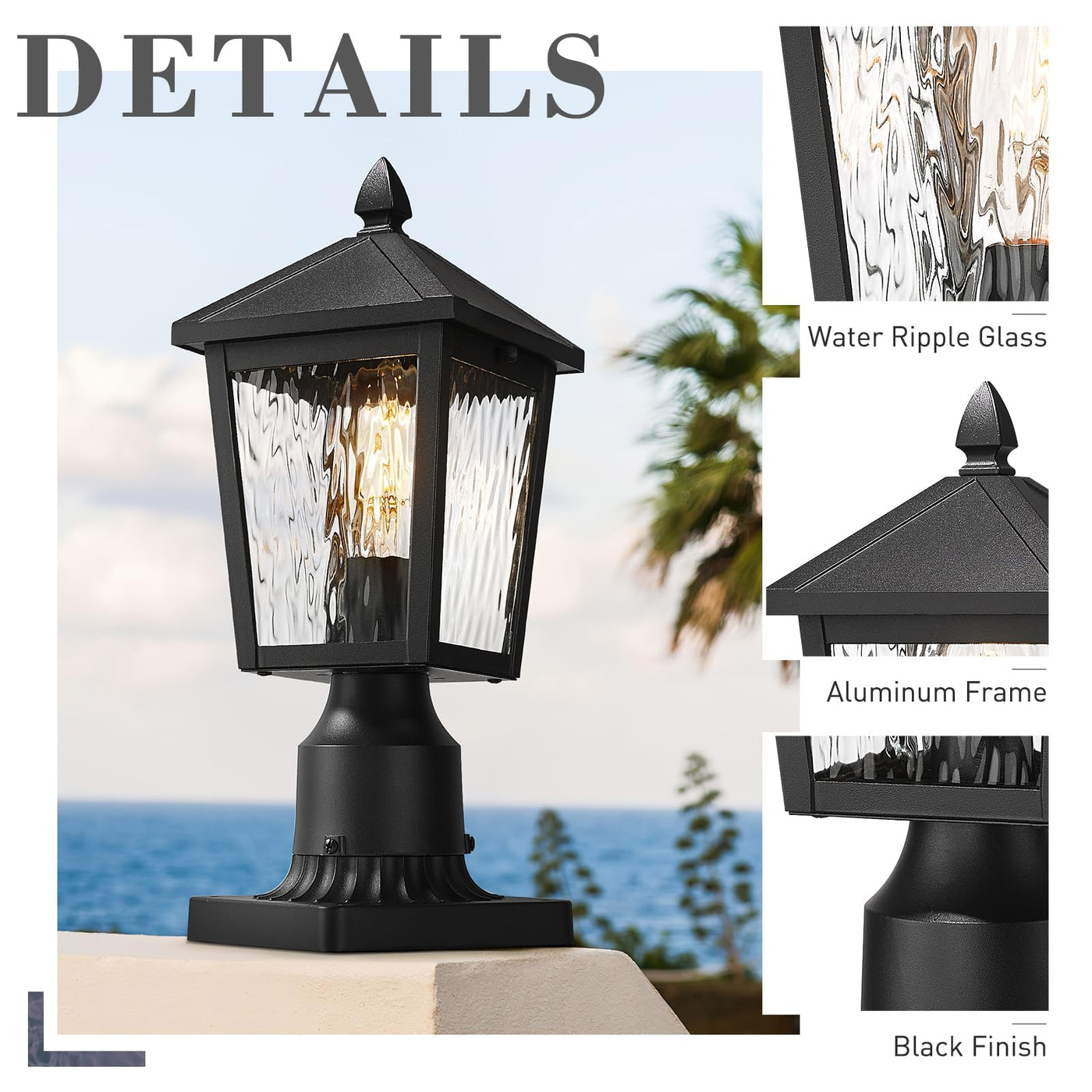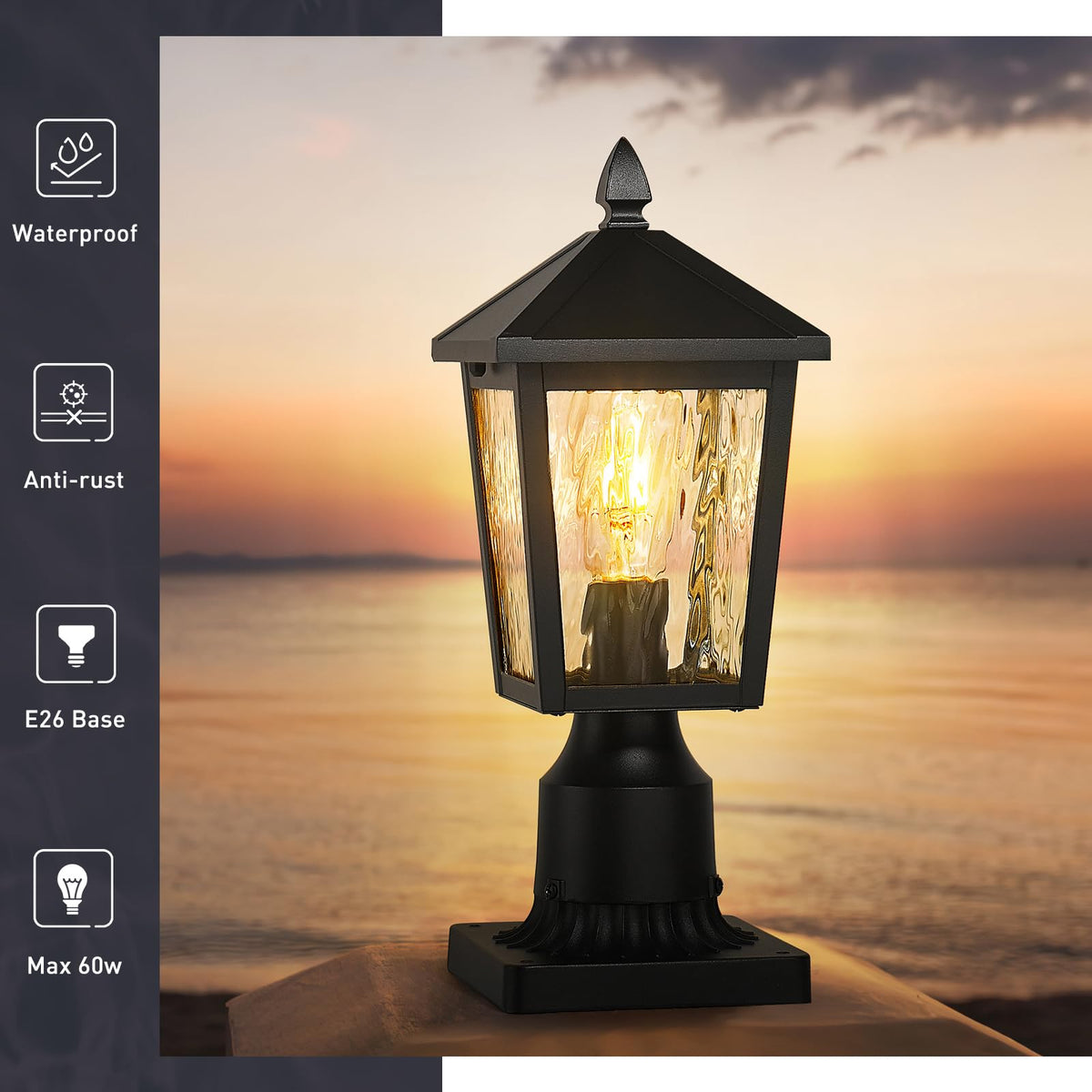 Zeyu 13.6 Inch Outdoor Light Fixture For Post, Exterior Post Light Fixtures For Patio, Die-Cast Aluminum With Water Ripple Glass