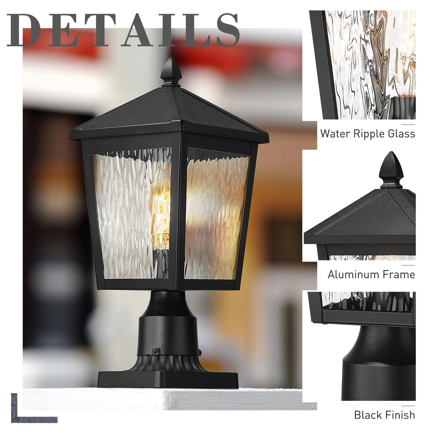 Zeyu Large Lamp Post Light Fixture, 16.1 Inch Outdoor Post Lamps For House Garden, Die-Cast Aluminum With Water Ripple Glass, Bl