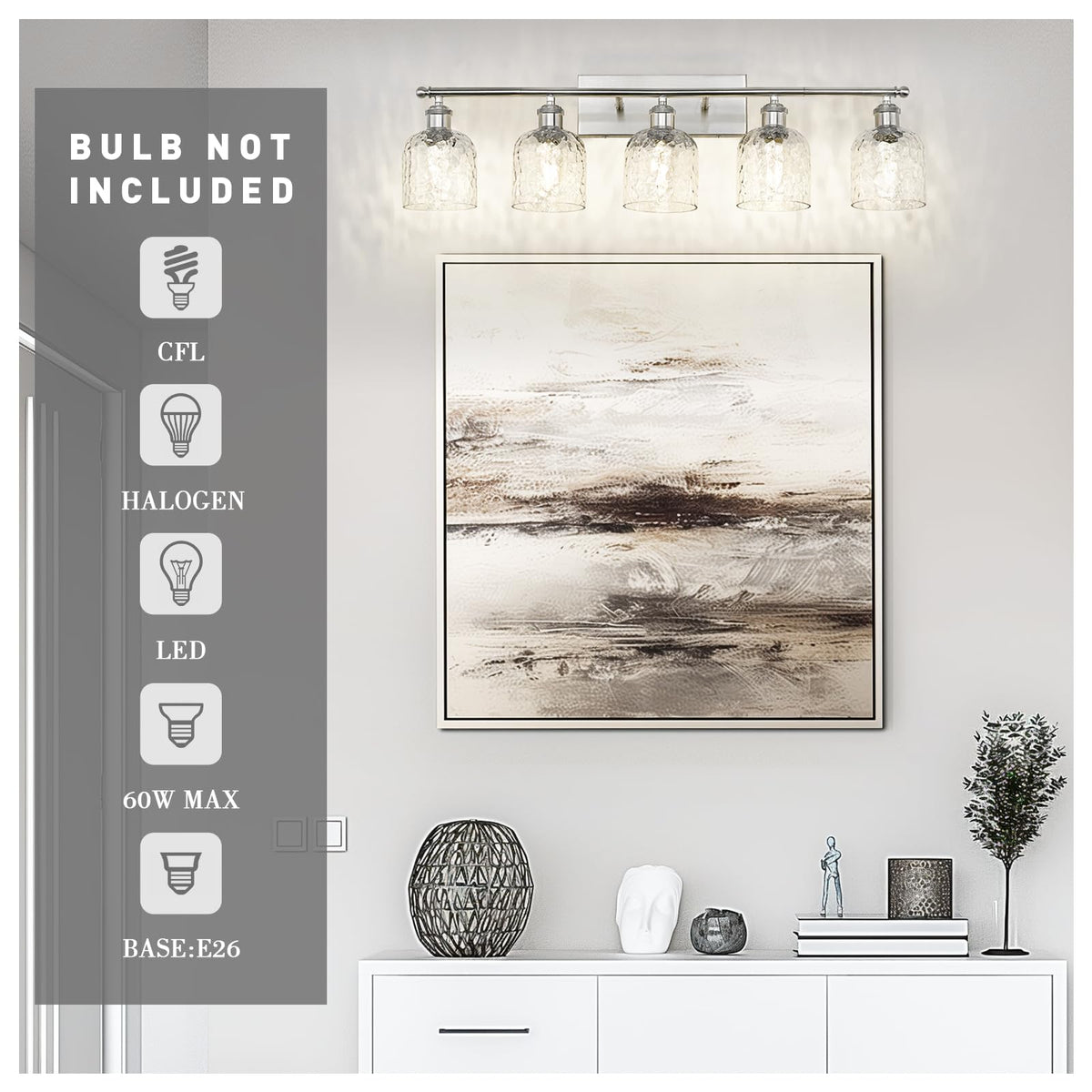 Zeyu Modern Brushed Nickel Bathroom Lights Fixture, 35 Inch 5 Light Vanity Lighting Over Mirror, Brushed Nickel Finish With Clea