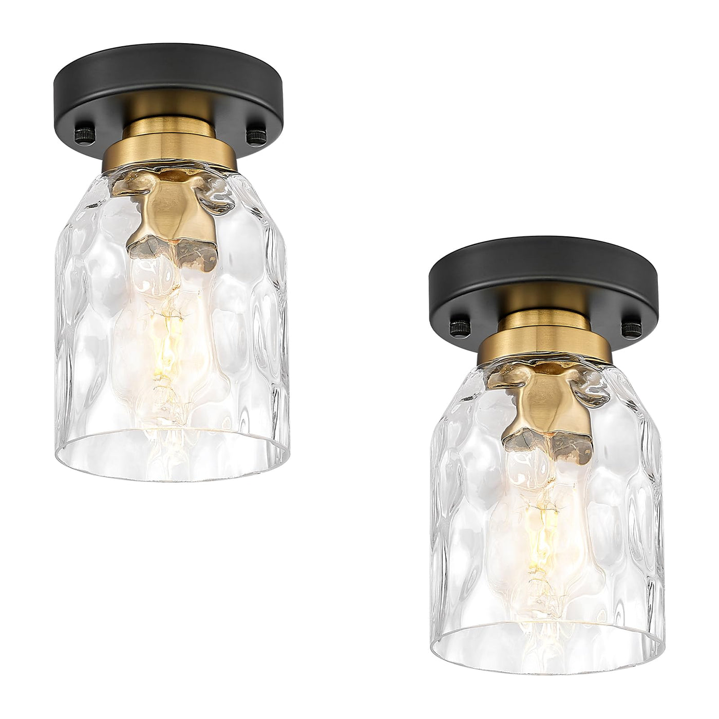 Zeyu Modern Ceiling Light Set Of 2, 1-Light Semi Flush Mount Ceiling Lighting Fixture For Bedroom Hallway, Water Ripple Glass Sh