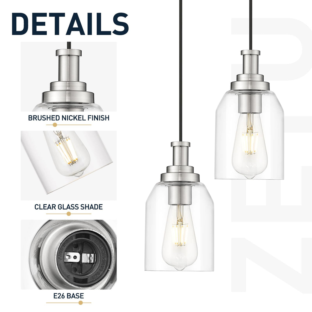 Zeyu Modern Pendant Light 2 Pack, Hanging Ceiling Light Fixture For Dining Room Bedroom, Brushed Nickel Pendant Lighting With Cl