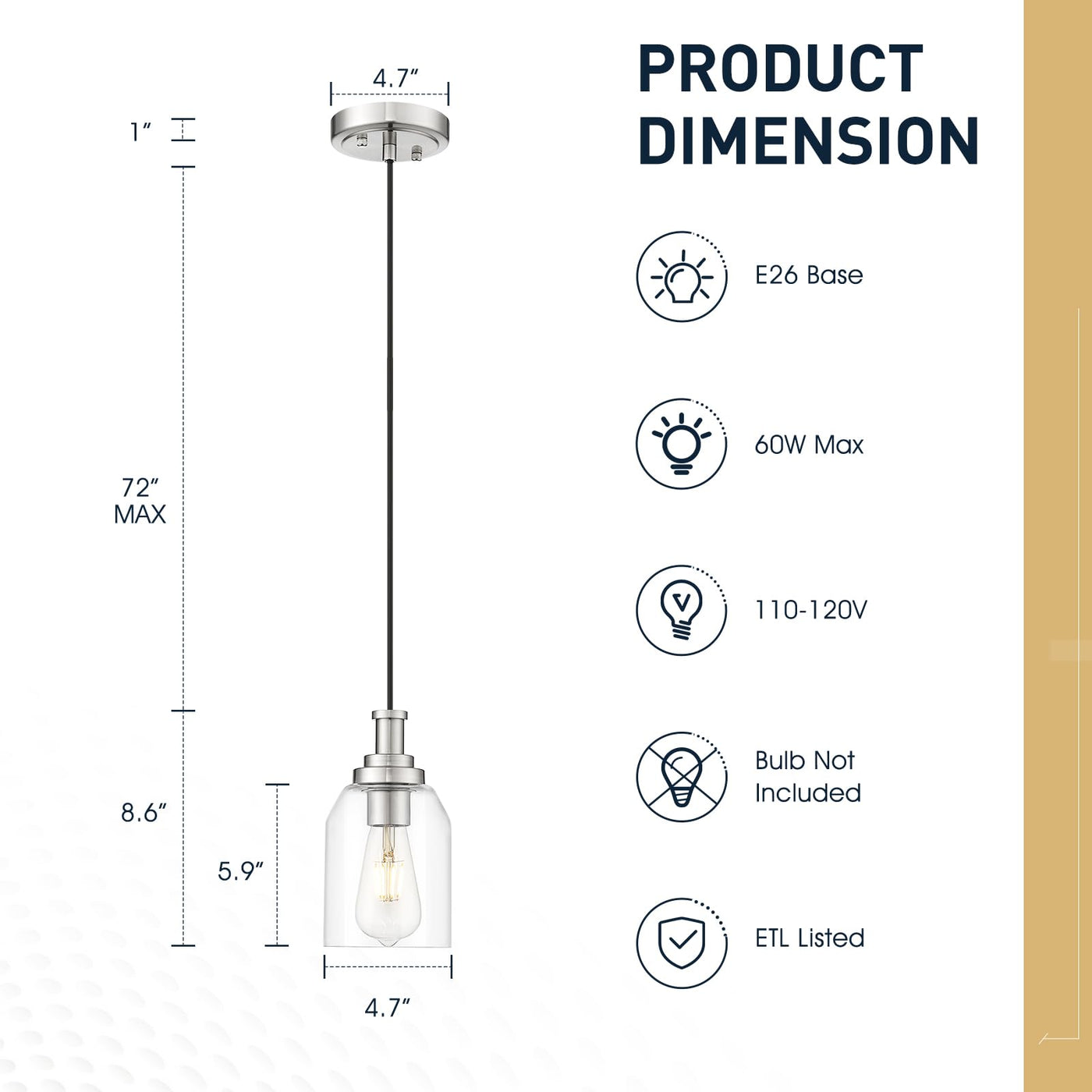 Zeyu 2 Pack Brushed Nickel Pendant Lights, Zg33M1L-2 Bn. Dimension: Light Fixture: 4.7'' In Diameter, 8.6'' In Height. Cord: 72'' Ceiling Canopy: Dia 4.7''.