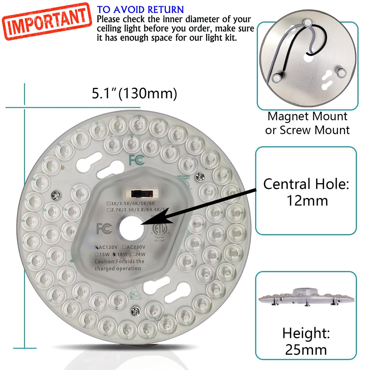 Wide Compatibility: Suitable for a variety of applications, this LED light kit can replace or upgrade numerous types of fixtures, including flush mount ceiling lights, ceiling fan lights, T9 fluorescent bulbs, and pendant lights.