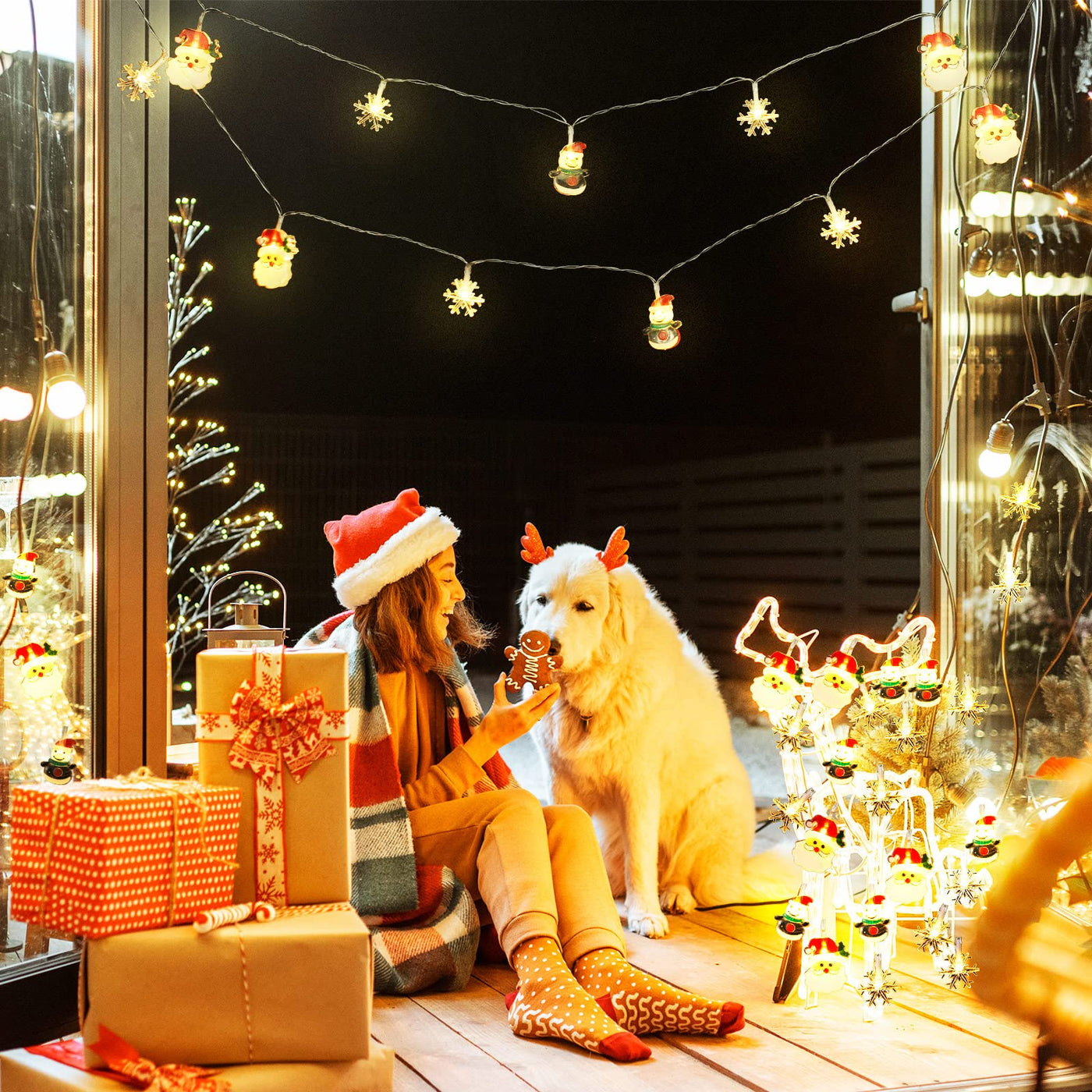 Zhanmai 2 Pcs Christmas Lights Decorations 10Ft 20 Led Battery Operated Christmas Santa Claus Snowflake Snowman String Waterproo