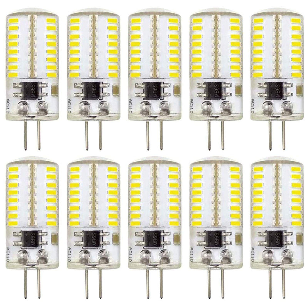 Attention !!! Only for AC110V-130V voltage, please do not connect to 12V-24V low voltage power supply. Make sure the correct voltage is required before ordering, otherwise the LED bulb will not light up. Specifications: Base: G4 Dimensions: Diameter 0.6 in, Length 1.6 in Color: Cool White (6000K) Brightness: 360LM Material: Silica gel Input Voltage: 110V-130V Beam Angle: 360 degrees Lifespan: 30000 hours Features: Dimmable Super bright LED light bulb. No mercury, No UV, infrared or other deleterious radiation. Environmental-friendly, with low power consumption and ultra long life. Give off a refreshing white illumination without glare and harsh shadows, turn the night into day, diffused light enhances visibility inside the room. Applications: Suitable for landscape lighting, courtyard, garden, lawn lights, puck lights, under cabinet lighting, under counter lights, post lights, recessed light and etc. Package includes: 10X 3W Daylight White G4 LED Bulb