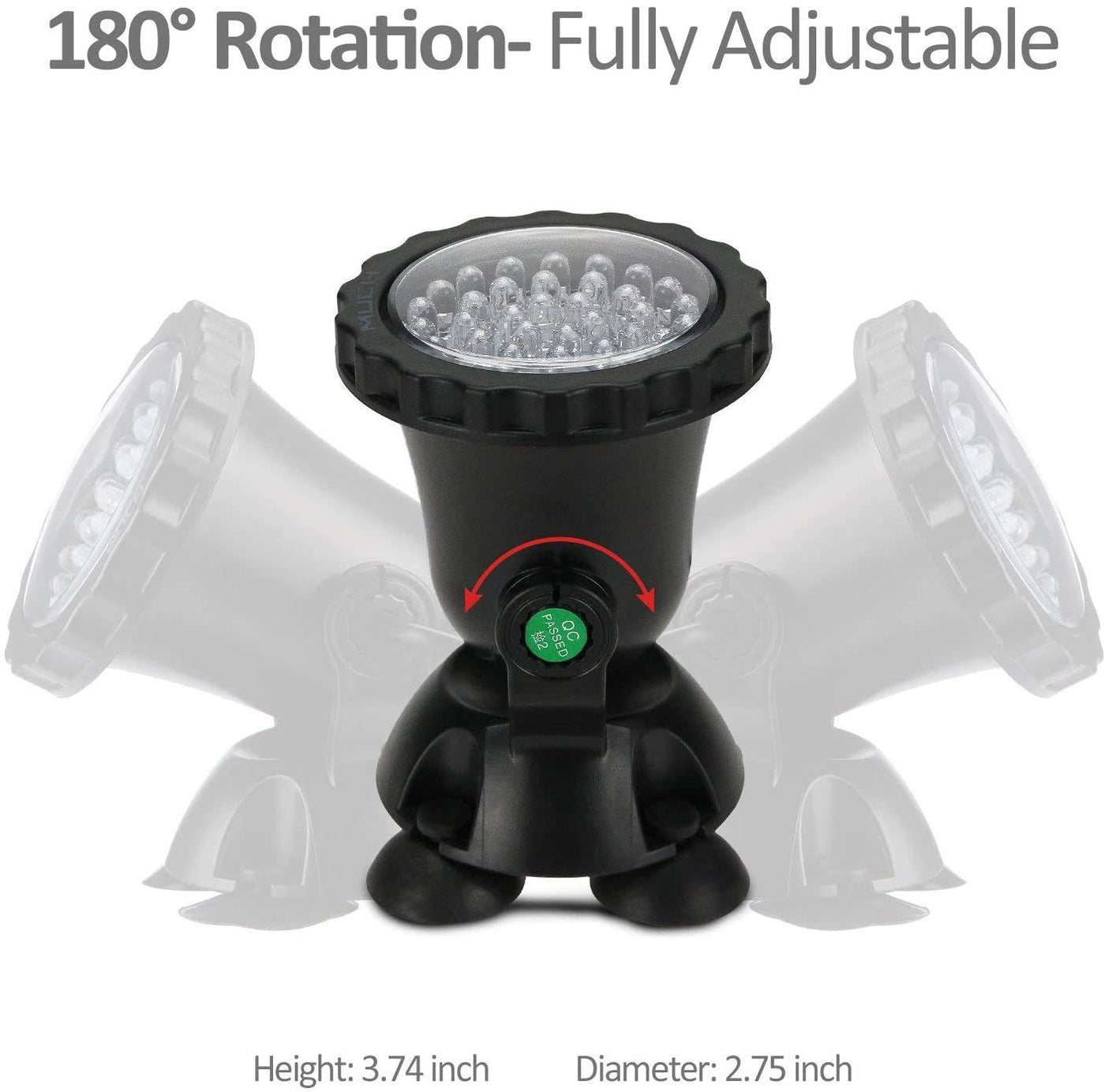 This light kit is constructed from well-made, heavy-duty ABS plastic, making it IP68 waterproof and suitable for use underwater. Its fully adjustable design features 180° articulation, allowing for precise positioning to achieve the desired lighting effect. The kit includes four suction cups for secure mounting on smooth surfaces, ensuring stability even in challenging environments. The included remote control allows users to operate the light from a distance of up to 49 feet (15 meters) and comes with a timer function to set the light for 2, 4, or 6 hours, promoting energy efficiency.