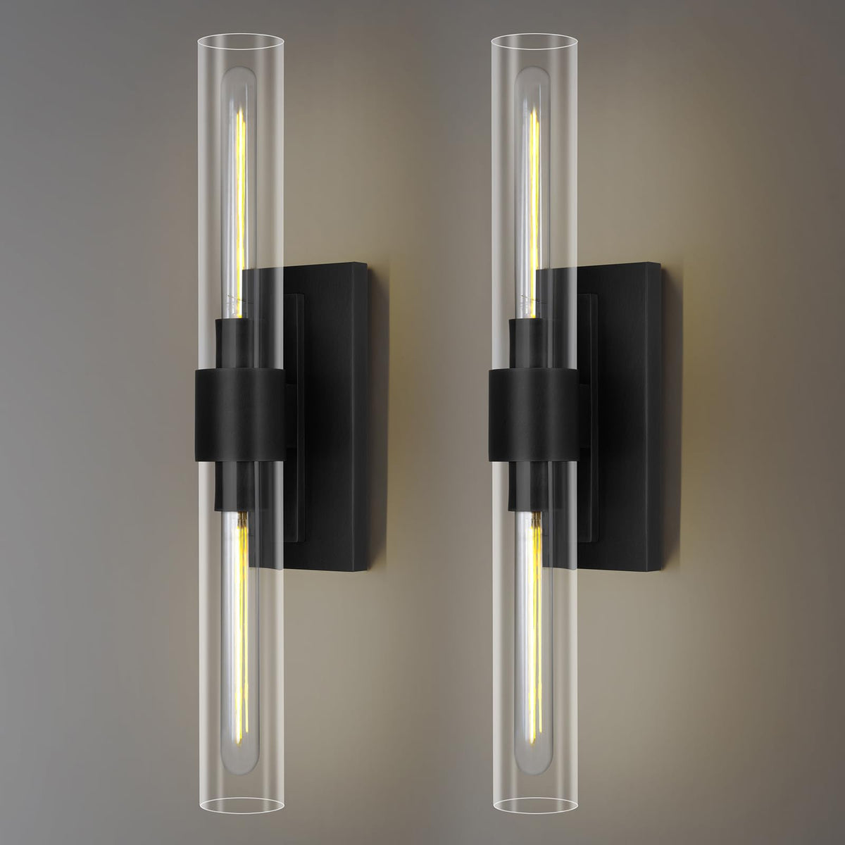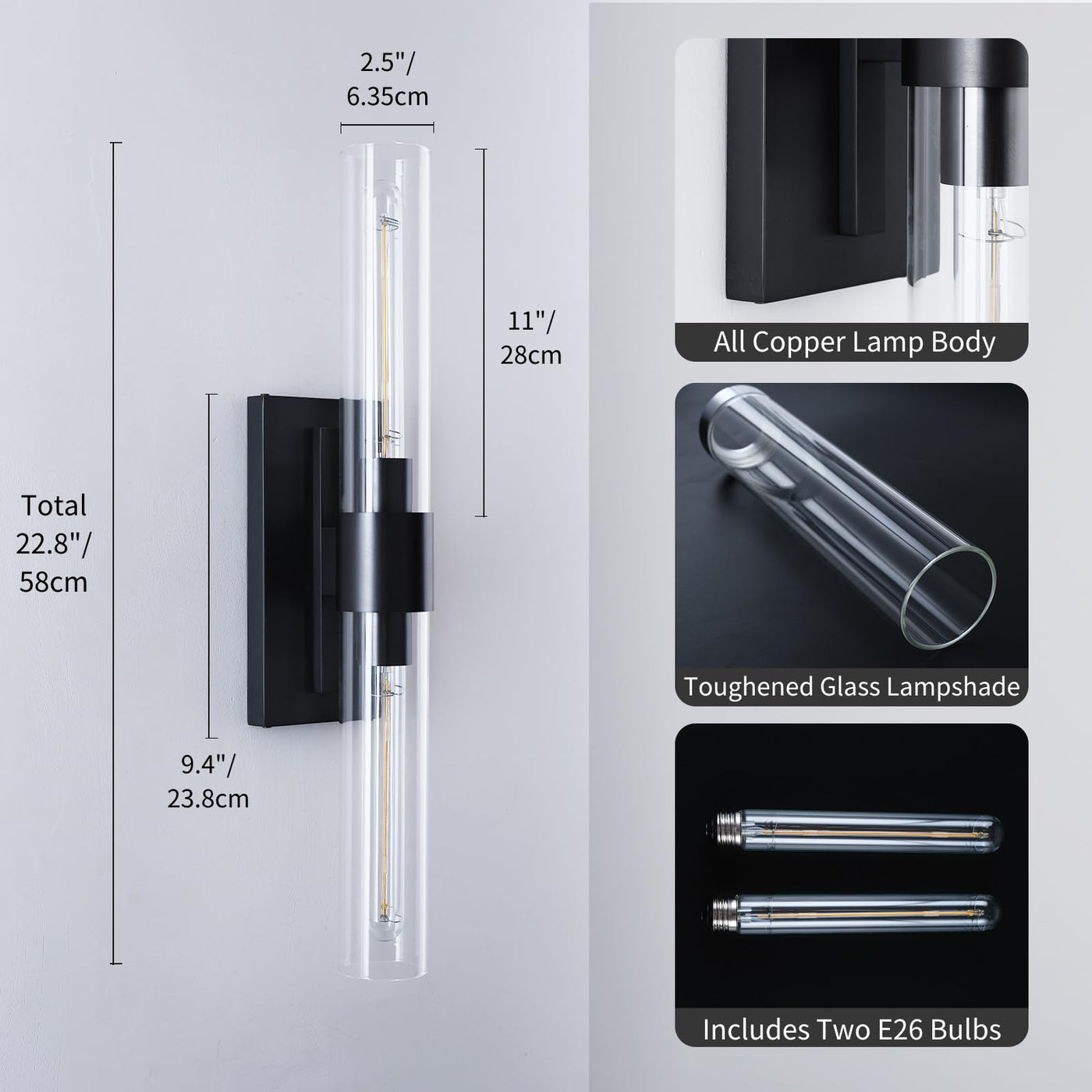 Black Wall Sconces Set Of Two, Bathroom Vanity Wall Sconces, 22.8'' Sconces Wall Lighting, 2-Light Wall Mounted Sconces, Indoor Wall Sconces For Bathroom, Living Room, Bedroom, Vanity, Staircase