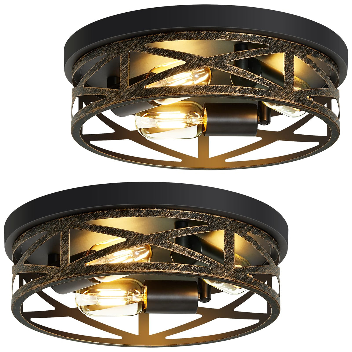 Zhu Yan 2 Pack Flush Mount Ceiling Light,3-Light Vintage Farmhouse Ceiling Light Fixture,Kitchen Lighting Fixtures Ceiling,Light