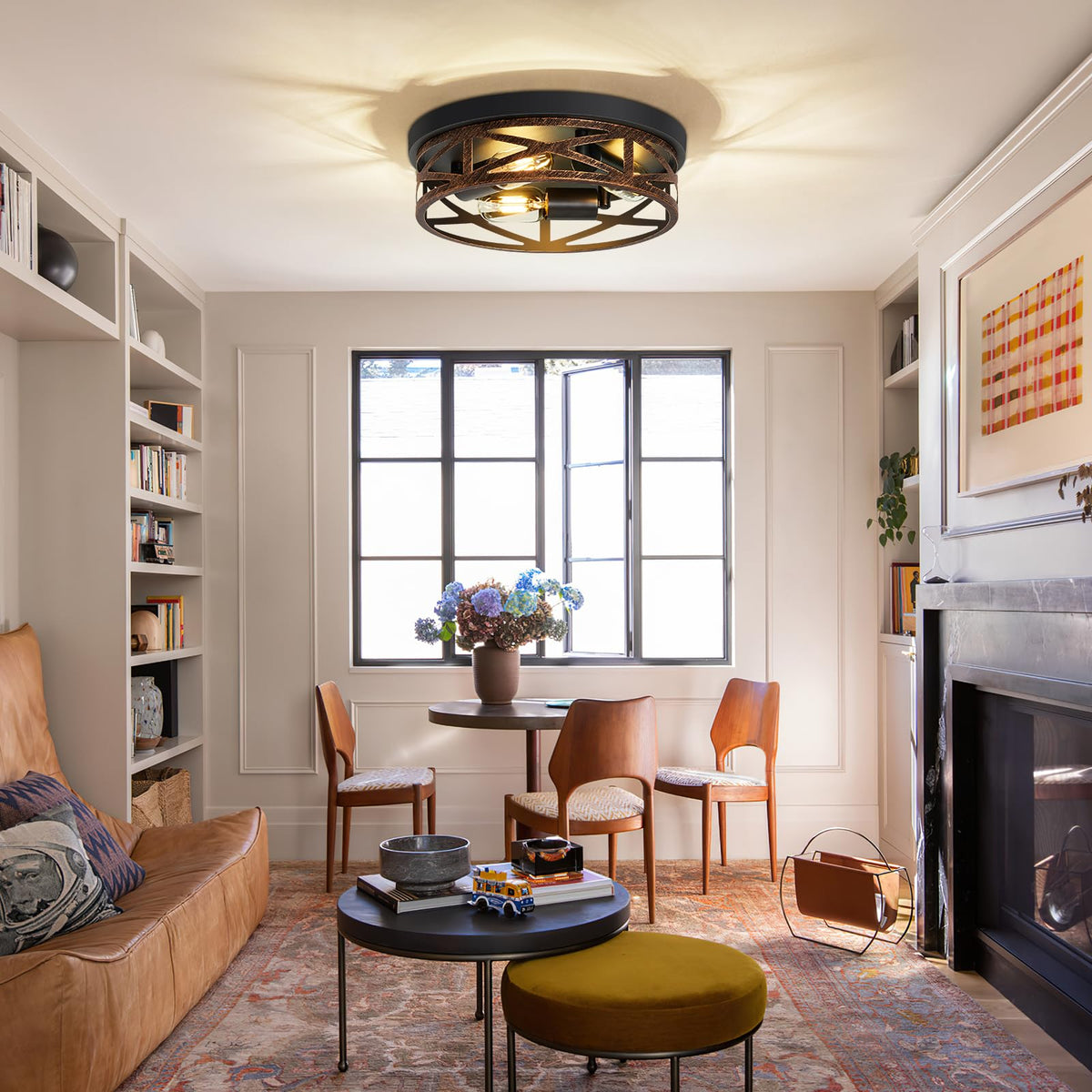 Q: How do I clean and maintain the farmhouse ceiling light?A: The glassless design of the ZHU YAN farmhouse ceiling light makes it easy to clean. Simply wipe the metal surface with a damp cloth to remove dust and maintain its appearance.
