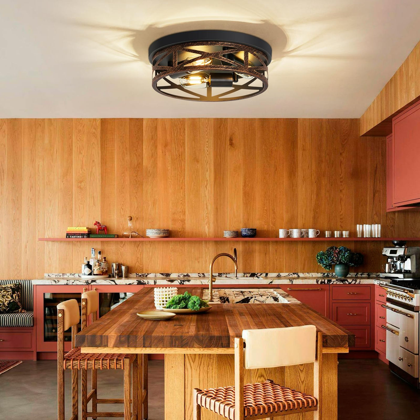 This ceiling light features a unique vintage design, characterized by a deliberately scratched metal finish that adds character. The flush mount style ensures a neat installation close to the ceiling, making it suitable for spaces with lower ceilings while seamlessly blending with both rustic and contemporary decor. The absence of glass not only contributes to its rustic aesthetic but also allows for easy maintenance and bulb replacement.