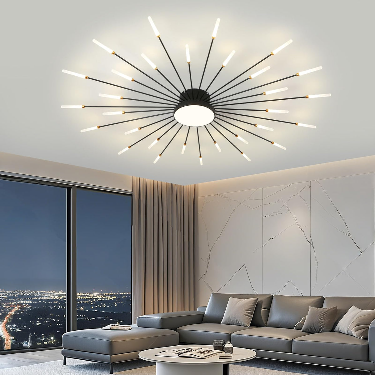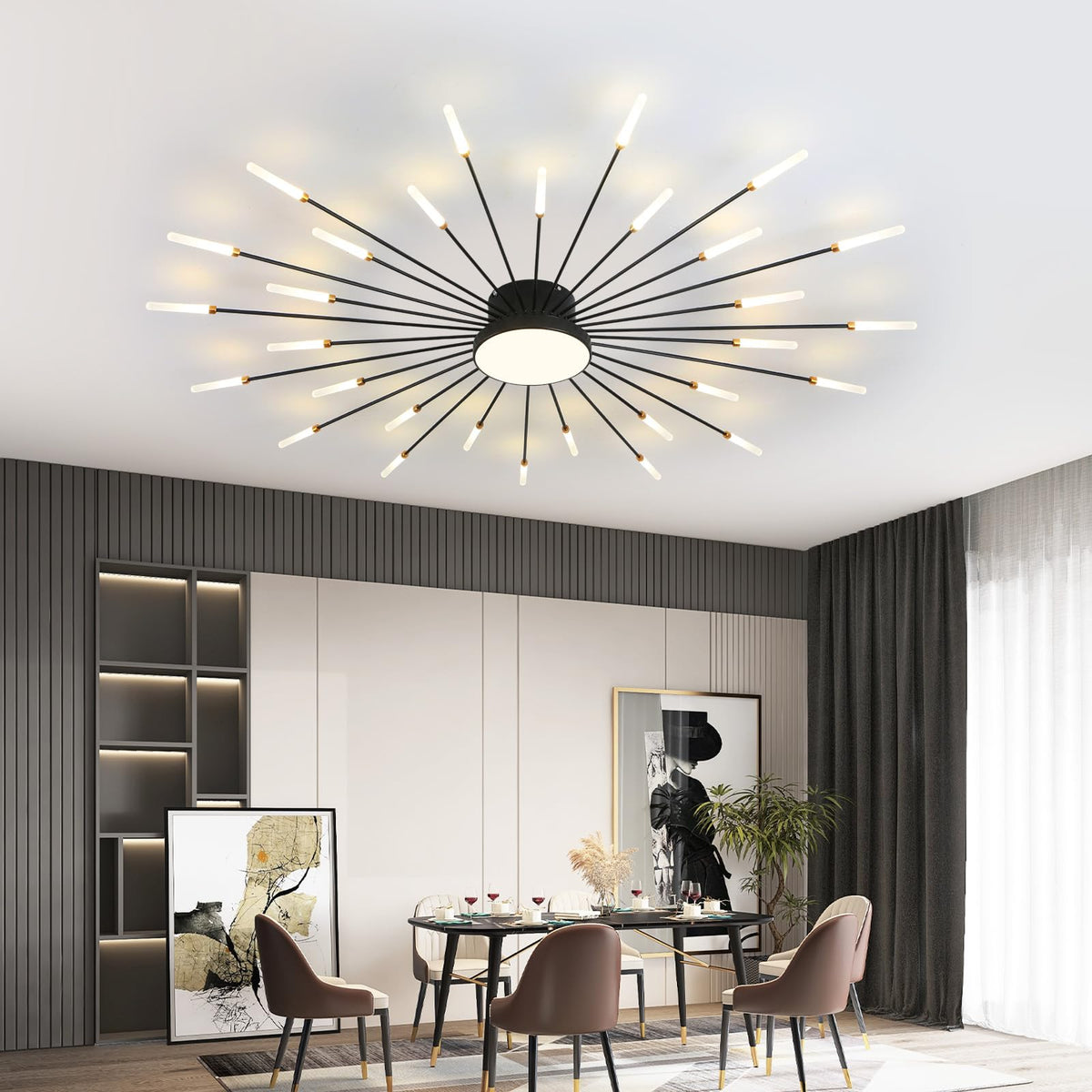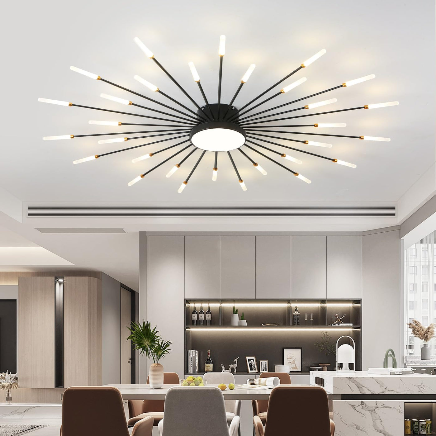 L?Mpara De Techo Moderna Ziidoo 42+1 Luces Diseo De Fuegos Artificiales De Metal Elegante Luminaria Led Para Cocina Comedor Dormitorio Pasillo Sala De Estar (Negro) ?L?Mpara De Techo Con Fuegos Artificiales Distintiva?Esta Elegante Luminaria Imita Formas De Fuegos Artificiales Exudando Sofisticaci?N Y Encanto. Sus Varillas De Aluminio Dorado Brillan Con Una Luz Radiante Creando Un Espect?Culo Contempor?Neo Que Realza La Est?Tica Y La Singularidad De Su Hogar. ?L?Mpara De Techo Impresionante?Dimensiones: 41 3L X 33 5W X 3 5H (105 Cm X 85 Cm X 9 Cm). Luz Blanca Neutra A 4000 K No Regulable Sin Control Remoto Lo Que Garantiza Una Iluminaci?N N?Tida Y Equilibrada. ?Impresionante L?Mpara De Techo?Dimensiones: 128 Cm De Largo X 98 Cm De Ancho X 9 Cm De Alto. Luz Blanca Neutra De 4000 K No Regulable Sin Control Remoto Lo Que Garantiza Una Iluminaci?N N?Tida Y Equilibrada. ?Iluminaci?N Led Eficiente?Equipado Con Un Chip Led De ?Ltima Generaci?N Cuenta Con Alto Brillo Eficiencia Energ?Tica Y Respeto Al Medio Ambiente. Con Una Vida ?Til De 50.000 Horas No Emite Rayos Uv Ni Ir Es Agradable Para La Vista. ?Pieza De Decoraci?N Vers?Til?Instalaci?N Sin Esfuerzo. Su Diseo Minimalista Pero Distintivo Se Integra A La Perfecci?N En Cualquier Entorno Transformando Los Espacios En Llamativas Piezas De Exhibici?N. Ideal Para Puertas Entradas Dormitorios Comedores Salas De Estar Hoteles Escaleras Y M?S: Una Soluci?N De Iluminaci?N Y Una Obra Maestra Decorativa. ?Artesan?A De Primera Calidad?Fabricado Con Acr?Lico De Alta Calidad Y Metal Resistente Al ?Xido Cuenta Con Una Difusi?N De Luz Superior Resistencia Al Calor Protecci?N Contra La Corrosi?N Resistencia A La Decoloraci?N Y Durabilidad A Prueba De Rayones. Adem?S Una Carcasa De Pl?Stico Ign?Fuga Avanzada Garantiza La Seguridad El?Ctrica Protegiendo Contra Descargas El?Ctricas Fugas Y Peligros De Cortocircuito Manteniendo A Sus Seres Queridos Seguros. Attention: 1. Ensure Power Is Off Prior To Installation. 2. Thoroughly Review Installation Guide Before Starting. ItS A Meticulous Process But Rewarding. 3. Self-Assembly Required Follow Instructions Patiently For A Stunning Finish. 4. For Optimal Assistance Consider A Licensed Electrician. 5. Verify Secure Mounting & Power Off During Installation. 6. Simplify Installation By Attaching Bulbs Before Crystals.