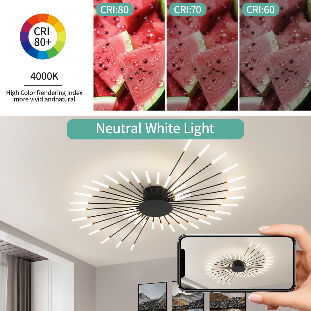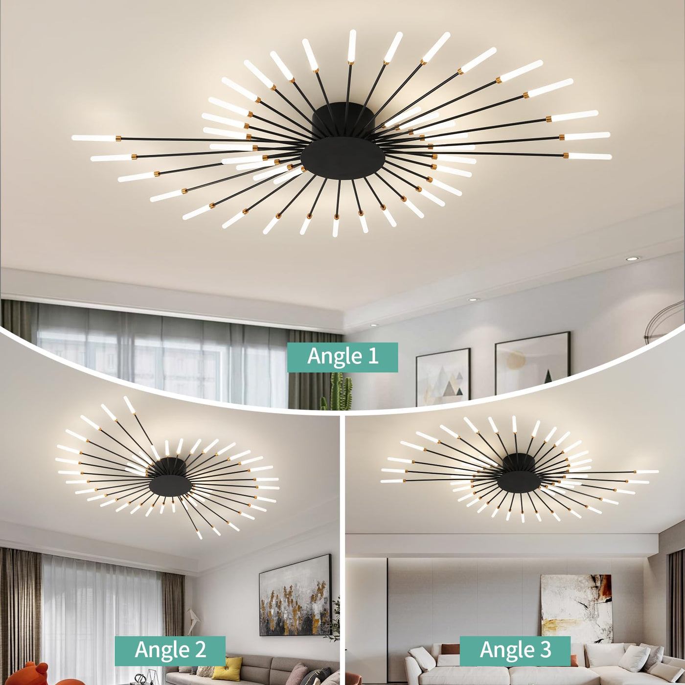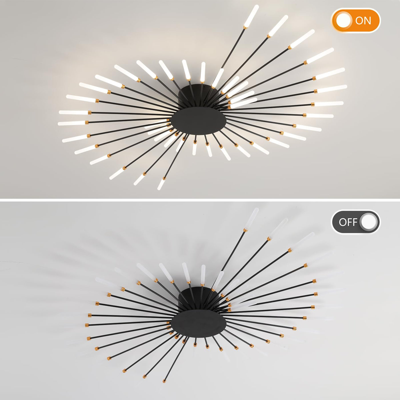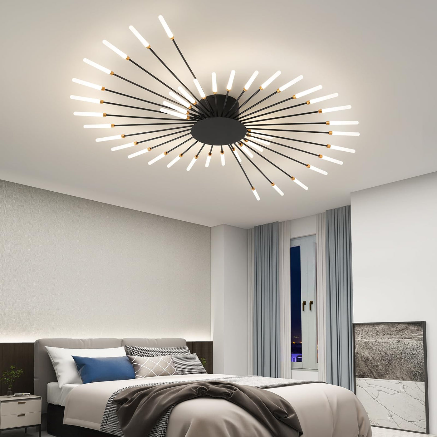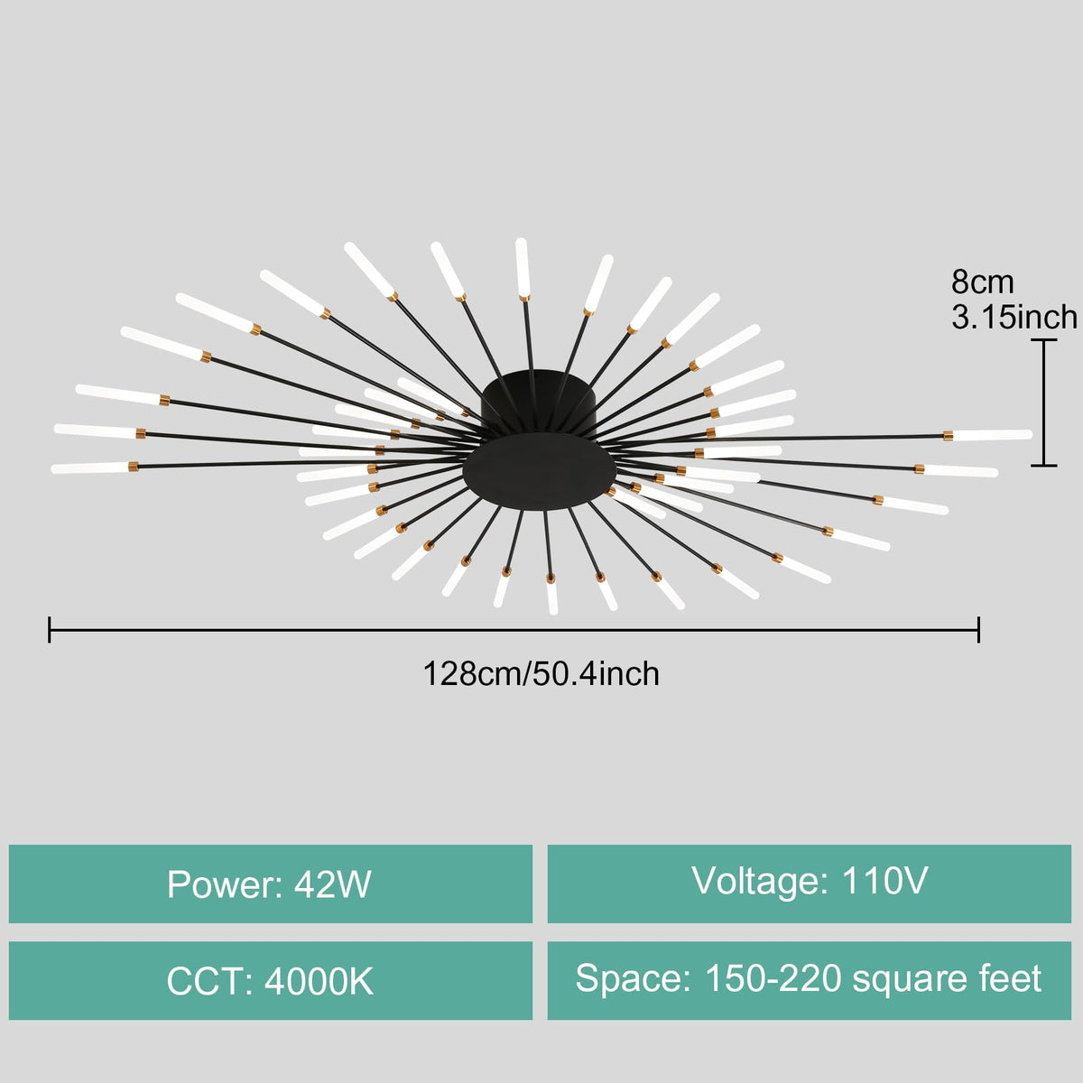 L?Mpara De Techo Moderna Ziidoo 42+1 Luces Diseo De Fuegos Artificiales De Metal Elegante Luminaria Led Para Cocina Comedor Dormitorio Pasillo Sala De Estar (Negro) ?L?Mpara De Techo Con Fuegos Artificiales Distintiva?Esta Elegante Luminaria Imita Formas De Fuegos Artificiales Exudando Sofisticaci?N Y Encanto. Sus Varillas De Aluminio Dorado Brillan Con Una Luz Radiante Creando Un Espect?Culo Contempor?Neo Que Realza La Est?Tica Y La Singularidad De Su Hogar. ?L?Mpara De Techo Impresionante?Dimensiones: 41 3L X 33 5W X 3 5H (105 Cm X 85 Cm X 9 Cm). Luz Blanca Neutra A 4000 K No Regulable Sin Control Remoto Lo Que Garantiza Una Iluminaci?N N?Tida Y Equilibrada. ?Impresionante L?Mpara De Techo?Dimensiones: 128 Cm De Largo X 98 Cm De Ancho X 9 Cm De Alto. Luz Blanca Neutra De 4000 K No Regulable Sin Control Remoto Lo Que Garantiza Una Iluminaci?N N?Tida Y Equilibrada. ?Iluminaci?N Led Eficiente?Equipado Con Un Chip Led De ?Ltima Generaci?N Cuenta Con Alto Brillo Eficiencia Energ?Tica Y Respeto Al Medio Ambiente. Con Una Vida ?Til De 50.000 Horas No Emite Rayos Uv Ni Ir Es Agradable Para La Vista. ?Pieza De Decoraci?N Vers?Til?Instalaci?N Sin Esfuerzo. Su Diseo Minimalista Pero Distintivo Se Integra A La Perfecci?N En Cualquier Entorno Transformando Los Espacios En Llamativas Piezas De Exhibici?N. Ideal Para Puertas Entradas Dormitorios Comedores Salas De Estar Hoteles Escaleras Y M?S: Una Soluci?N De Iluminaci?N Y Una Obra Maestra Decorativa. ?Artesan?A De Primera Calidad?Fabricado Con Acr?Lico De Alta Calidad Y Metal Resistente Al ?Xido Cuenta Con Una Difusi?N De Luz Superior Resistencia Al Calor Protecci?N Contra La Corrosi?N Resistencia A La Decoloraci?N Y Durabilidad A Prueba De Rayones. Adem?S Una Carcasa De Pl?Stico Ign?Fuga Avanzada Garantiza La Seguridad El?Ctrica Protegiendo Contra Descargas El?Ctricas Fugas Y Peligros De Cortocircuito Manteniendo A Sus Seres Queridos Seguros. Attention: 1. Ensure Power Is Off Prior To Installation. 2. Thoroughly Review Installation Guide Before Starting. ItS A Meticulous Process But Rewarding. 3. Self-Assembly Required Follow Instructions Patiently For A Stunning Finish. 4. For Optimal Assistance Consider A Licensed Electrician. 5. Verify Secure Mounting & Power Off During Installation. 6. Simplify Installation By Attaching Bulbs Before Crystals.