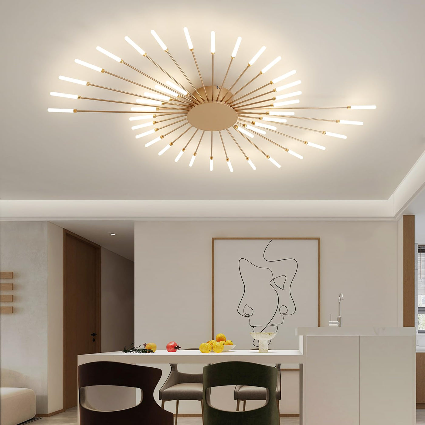 L?Mpara De Techo Moderna Ziidoo 42+1 Luces Diseo De Fuegos Artificiales De Metal Elegante Luminaria Led Para Cocina Comedor Dormitorio Pasillo Sala De Estar (Negro) ?L?Mpara De Techo Con Fuegos Artificiales Distintiva?Esta Elegante Luminaria Imita Formas De Fuegos Artificiales Exudando Sofisticaci?N Y Encanto. Sus Varillas De Aluminio Dorado Brillan Con Una Luz Radiante Creando Un Espect?Culo Contempor?Neo Que Realza La Est?Tica Y La Singularidad De Su Hogar. ?L?Mpara De Techo Impresionante?Dimensiones: 41 3L X 33 5W X 3 5H (105 Cm X 85 Cm X 9 Cm). Luz Blanca Neutra A 4000 K No Regulable Sin Control Remoto Lo Que Garantiza Una Iluminaci?N N?Tida Y Equilibrada. ?Impresionante L?Mpara De Techo?Dimensiones: 128 Cm De Largo X 98 Cm De Ancho X 9 Cm De Alto. Luz Blanca Neutra De 4000 K No Regulable Sin Control Remoto Lo Que Garantiza Una Iluminaci?N N?Tida Y Equilibrada. ?Iluminaci?N Led Eficiente?Equipado Con Un Chip Led De ?Ltima Generaci?N Cuenta Con Alto Brillo Eficiencia Energ?Tica Y Respeto Al Medio Ambiente. Con Una Vida ?Til De 50.000 Horas No Emite Rayos Uv Ni Ir Es Agradable Para La Vista. ?Pieza De Decoraci?N Vers?Til?Instalaci?N Sin Esfuerzo. Su Diseo Minimalista Pero Distintivo Se Integra A La Perfecci?N En Cualquier Entorno Transformando Los Espacios En Llamativas Piezas De Exhibici?N. Ideal Para Puertas Entradas Dormitorios Comedores Salas De Estar Hoteles Escaleras Y M?S: Una Soluci?N De Iluminaci?N Y Una Obra Maestra Decorativa. ?Artesan?A De Primera Calidad?Fabricado Con Acr?Lico De Alta Calidad Y Metal Resistente Al ?Xido Cuenta Con Una Difusi?N De Luz Superior Resistencia Al Calor Protecci?N Contra La Corrosi?N Resistencia A La Decoloraci?N Y Durabilidad A Prueba De Rayones. Adem?S Una Carcasa De Pl?Stico Ign?Fuga Avanzada Garantiza La Seguridad El?Ctrica Protegiendo Contra Descargas El?Ctricas Fugas Y Peligros De Cortocircuito Manteniendo A Sus Seres Queridos Seguros. Attention: 1. Ensure Power Is Off Prior To Installation. 2. Thoroughly Review Installation Guide Before Starting. ItS A Meticulous Process But Rewarding. 3. Self-Assembly Required Follow Instructions Patiently For A Stunning Finish. 4. For Optimal Assistance Consider A Licensed Electrician. 5. Verify Secure Mounting & Power Off During Installation. 6. Simplify Installation By Attaching Bulbs Before Crystals.