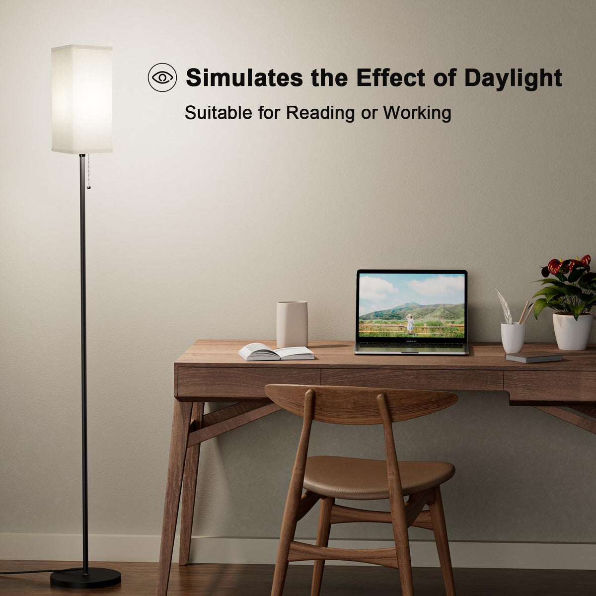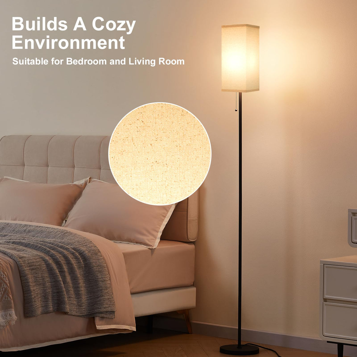 Ziisee Beige Floor Lamps For Living Room - 3 Color Temperature Black Standing Lamps With Pull Chain Switch, Modern Tall Lamp For