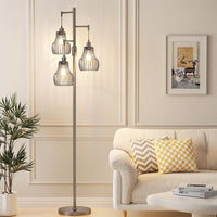 Ziisee Dimmable Floor Lamps For Living Room, Industrial Tree Standing Tall Lamps With 3 Elegant Cage Shade For Bedroom Office -