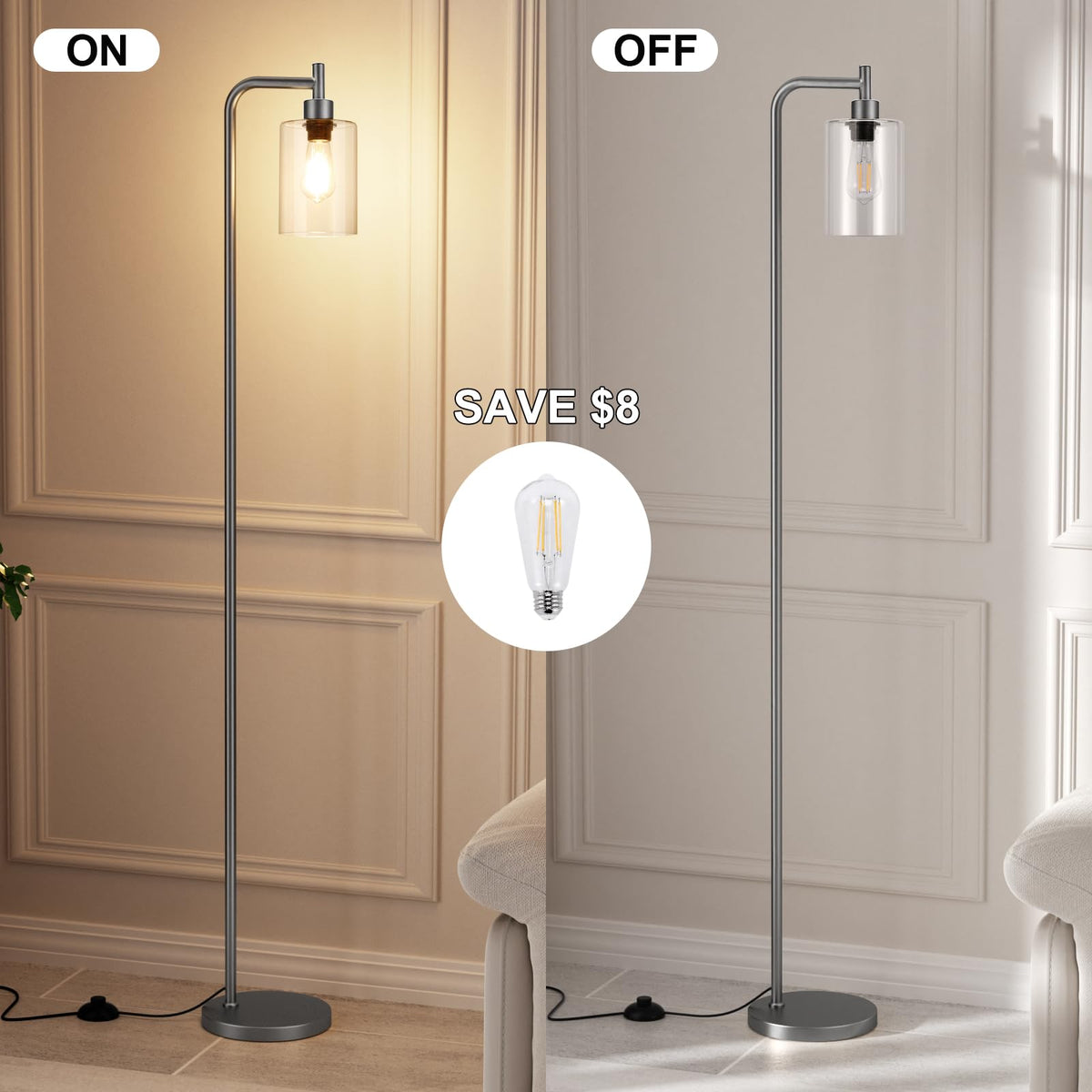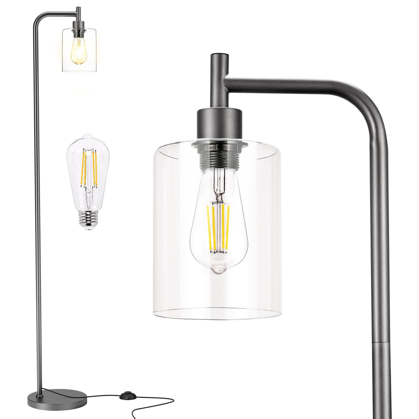 Ziisee Floor Lamps For Living Room - Industrial Standing Lamp With Glass Shade, Modern Grey Floor Lamp With Led Bulb, Farmhouse