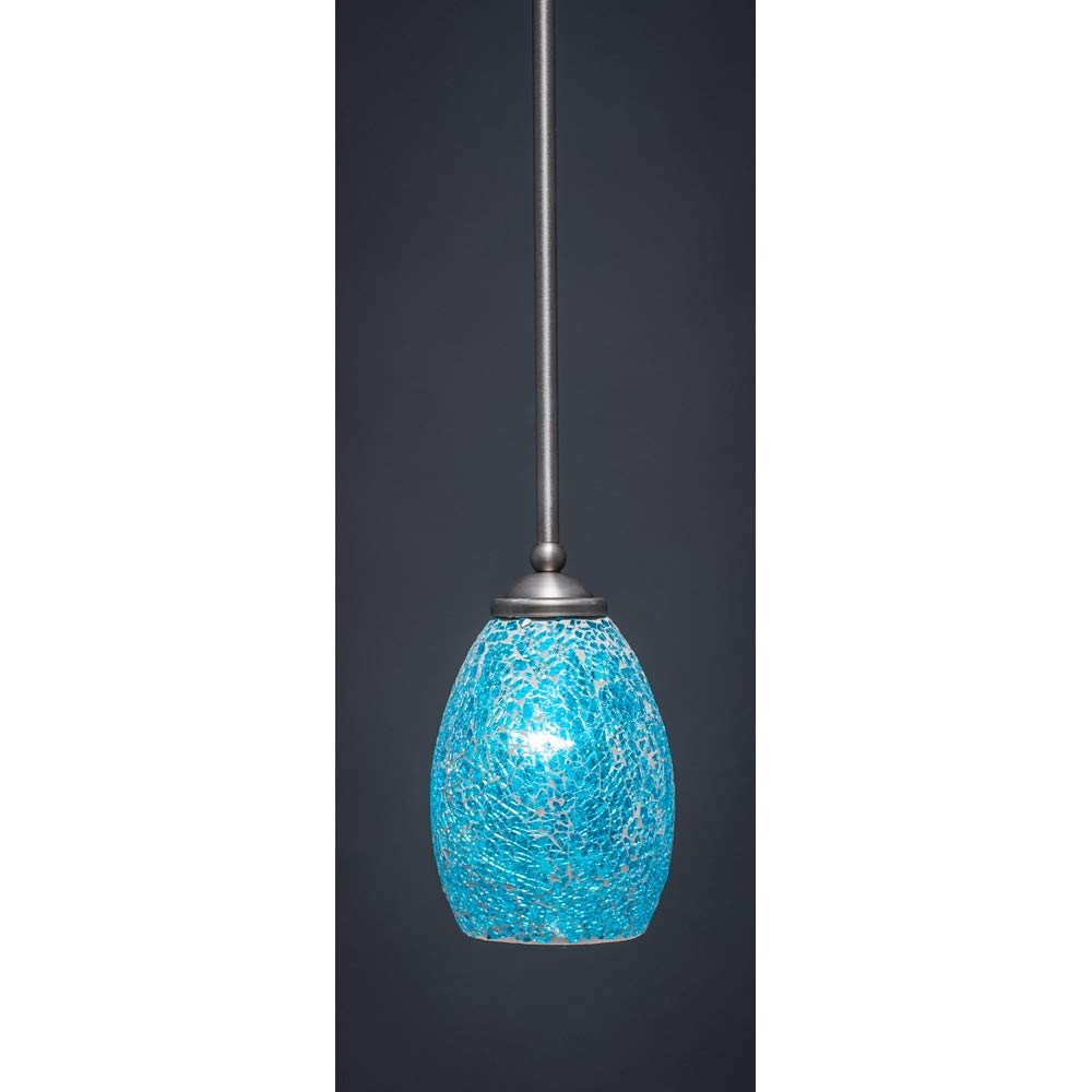 560-GP-5055 Zilo 1 Light Mini Pendant Shown In Graphite Finish With 5" Turquoise Fusion Glass. Rated for: Dry location. Light Bulb Data: 1 Medium 100 watt. Bulb included: No.