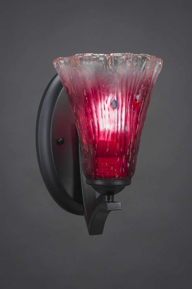 551-MB-726 Zilo Wall Sconce Shown In Matte Black Finish With 5.5" Raspberry Crystal Glass. Rated for: Dry location. Light Bulb Data: 1 Medium 100 watt. Bulb included: No.