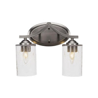 552-GP-300 Zilo 2 Light Bath Bar Shown In Graphite Finish With 3.5" Clear Bubble Glass. Rated for: Dry location. Light Bulb Data: 2 Medium 60 watt. Bulb included: No.