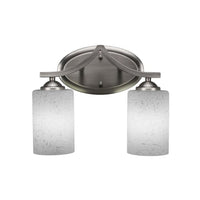 552-GP-310 Zilo 2 Light Bath Bar Shown In Graphite Finish With 3.5" White Muslin Glass. Rated for: Dry location. Light Bulb Data: 2 Medium 60 watt. Bulb included: No.