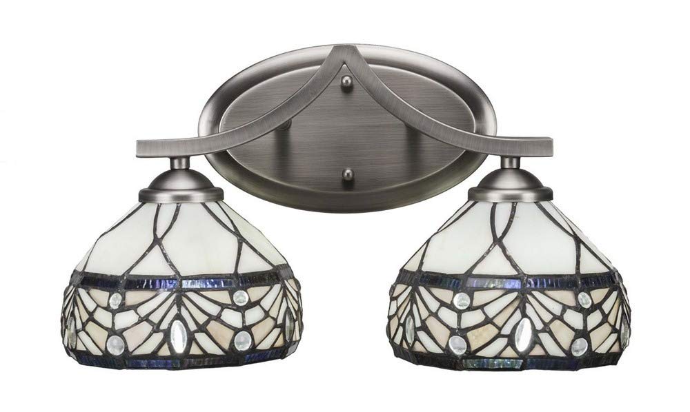 552-GP-9485 Zilo 2 Light Bath Bar Shown In Graphite Finish With 7" Royal Art Glass. Rated for: Dry location. Light Bulb Data: 2 Medium 60 watt. Bulb included: No.