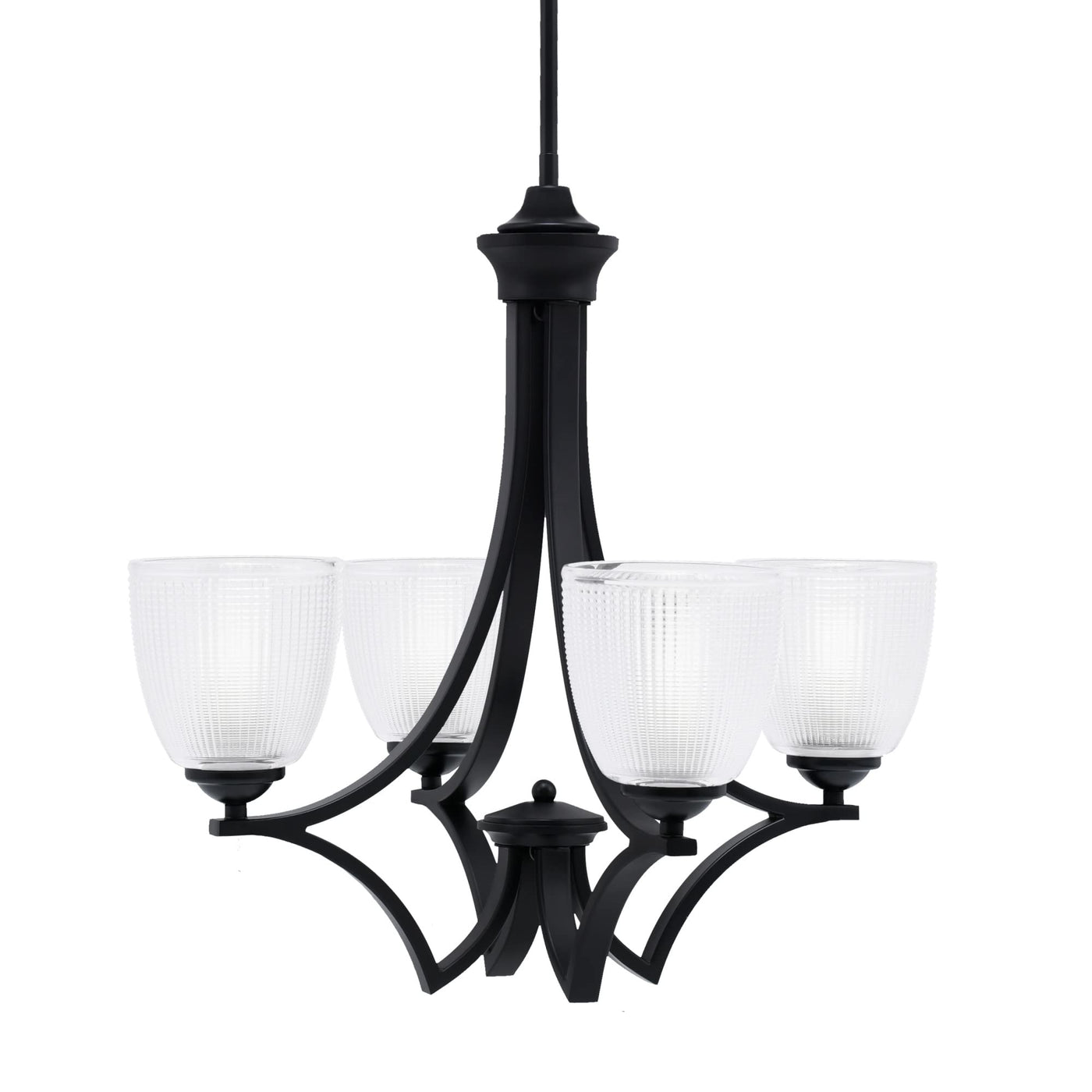 Zilo Uplight, 4 Light, Chandelier In Matte Black Finish With 5" Clear Ribbed Glass