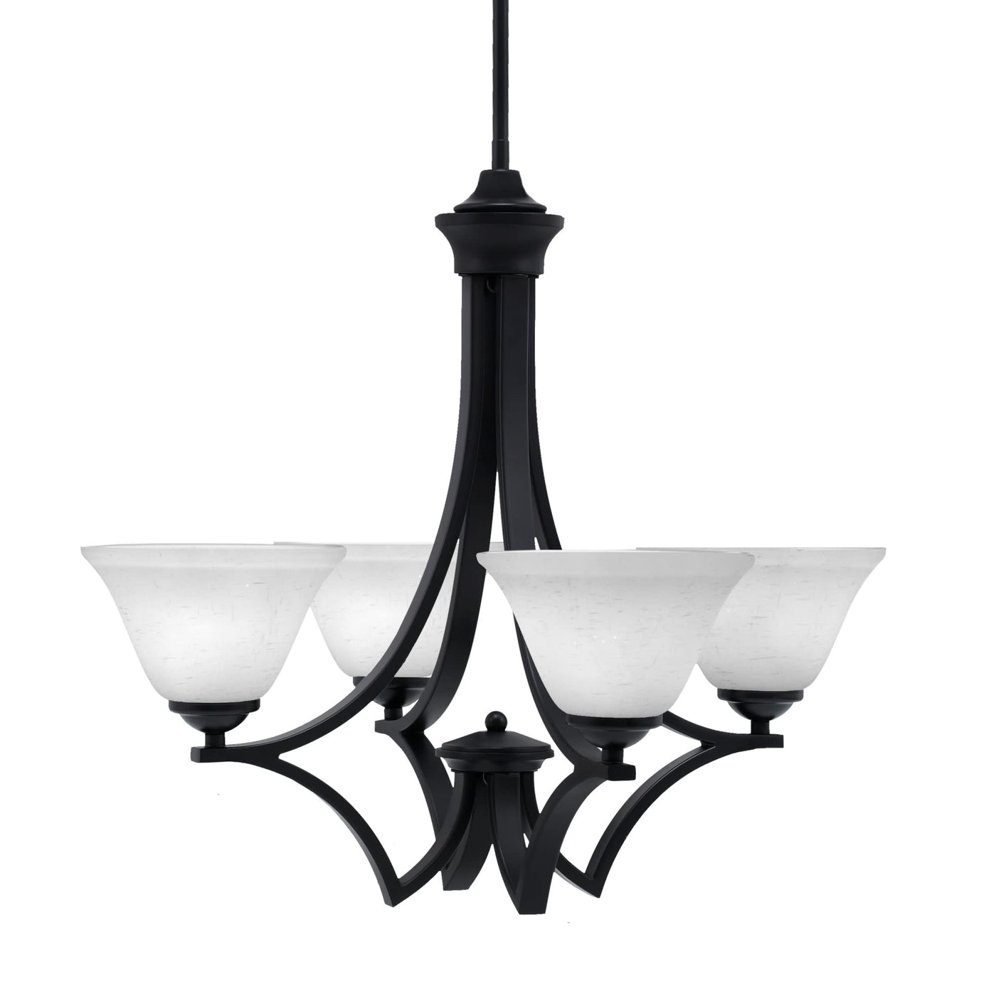 Zilo Uplight, 4 Light, Chandelier In Matte Black Finish With 7" White Muslin Glass