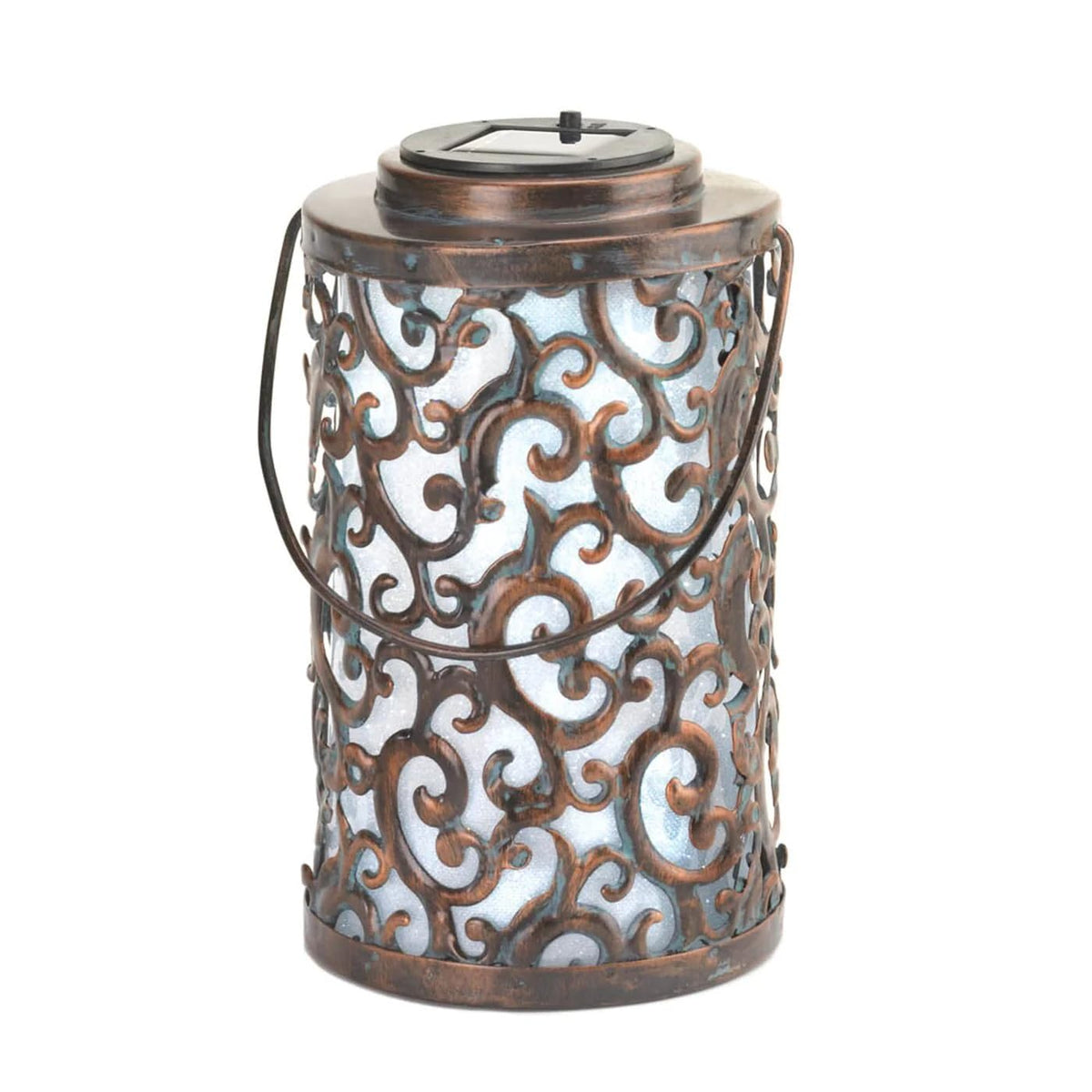 Zingz & Thingz Outdoor Hanging Garden Gate Solar Lantern, Decorative Light Home Decor, 8.5" Tall, Bronze