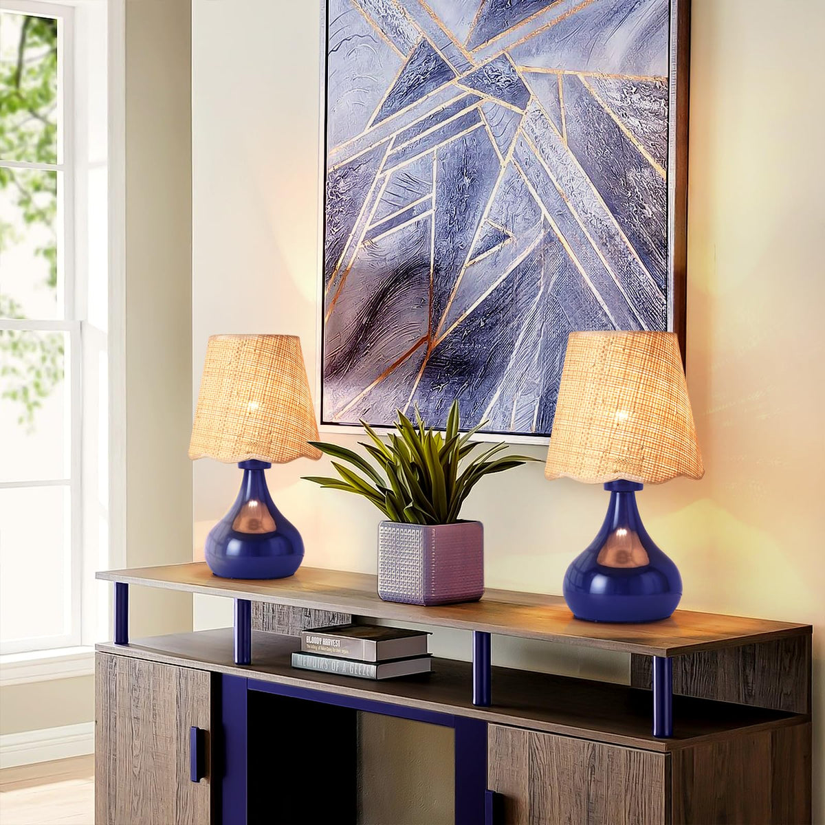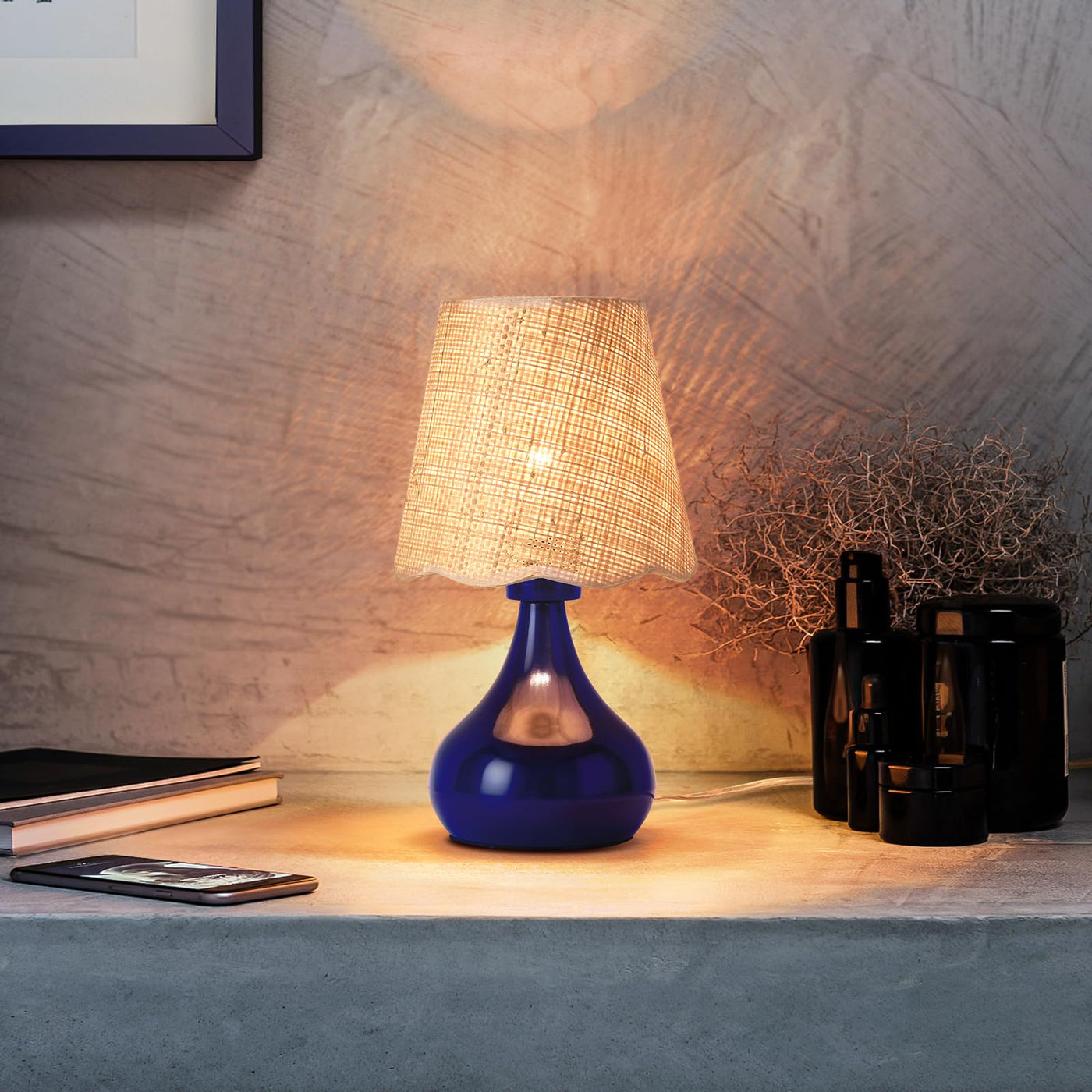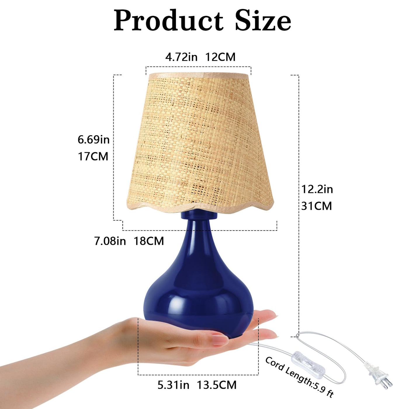 Ziqqeelam Navy Blue Small Bedside Mini Table Lamp For Bedroom, Small Bedroom Lamps For Nightstand, Small Rattan Shade Table Lamp