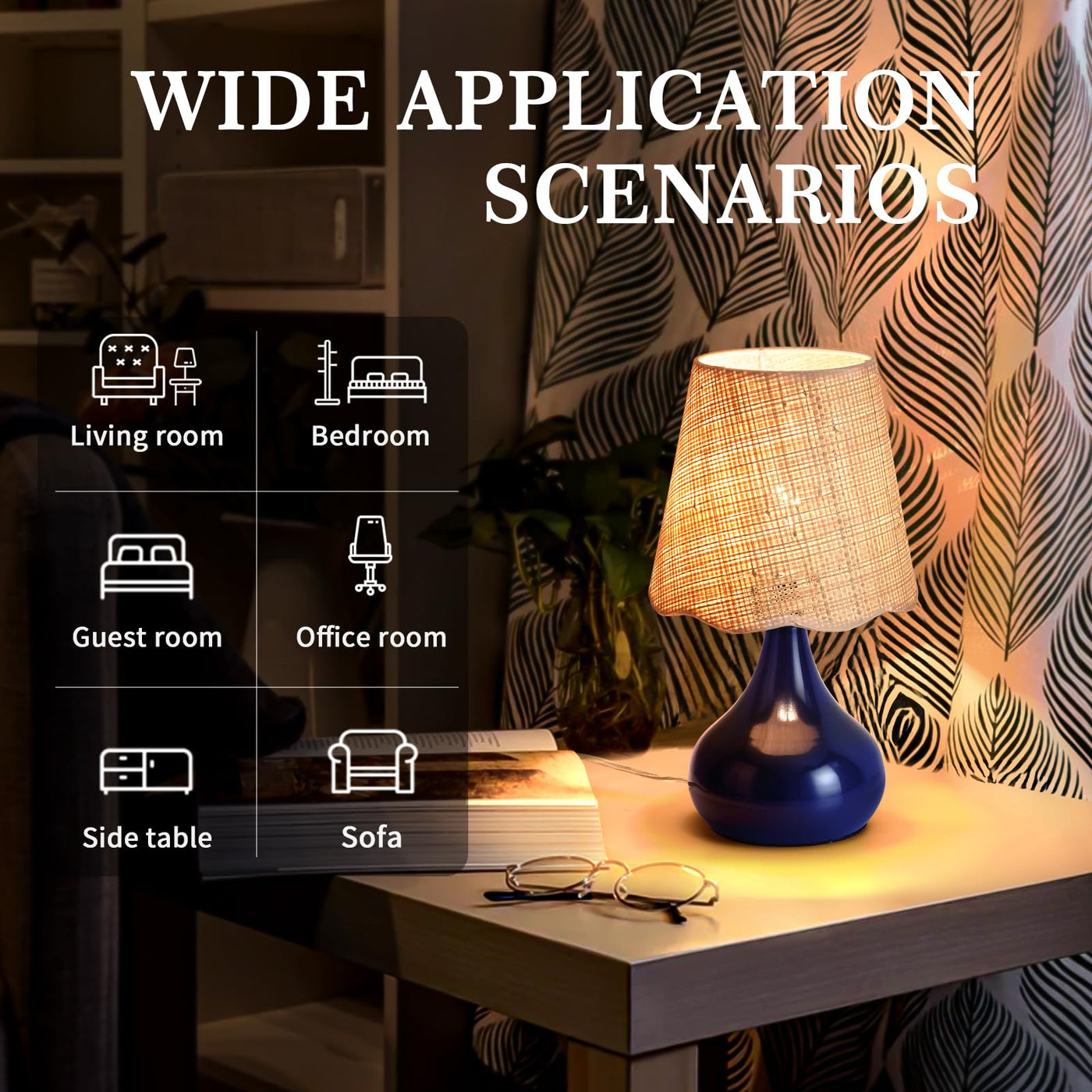 Navy Blue Small Bedside Mini Table Lamp For Bedroom, Small Bedroom Lamps For Nightstand, Small Rattan Shade Table Lamps For Small Spaces For Bedroom, Home Office, Living Room,Kitchen * 1Pcs