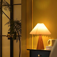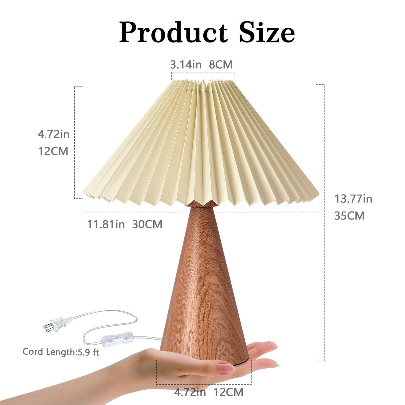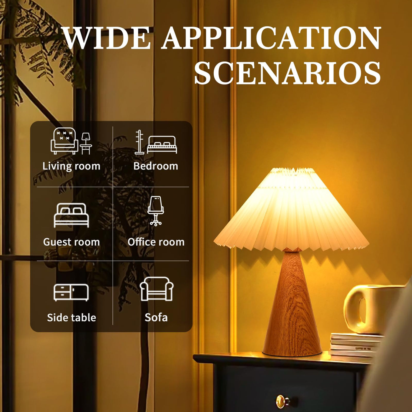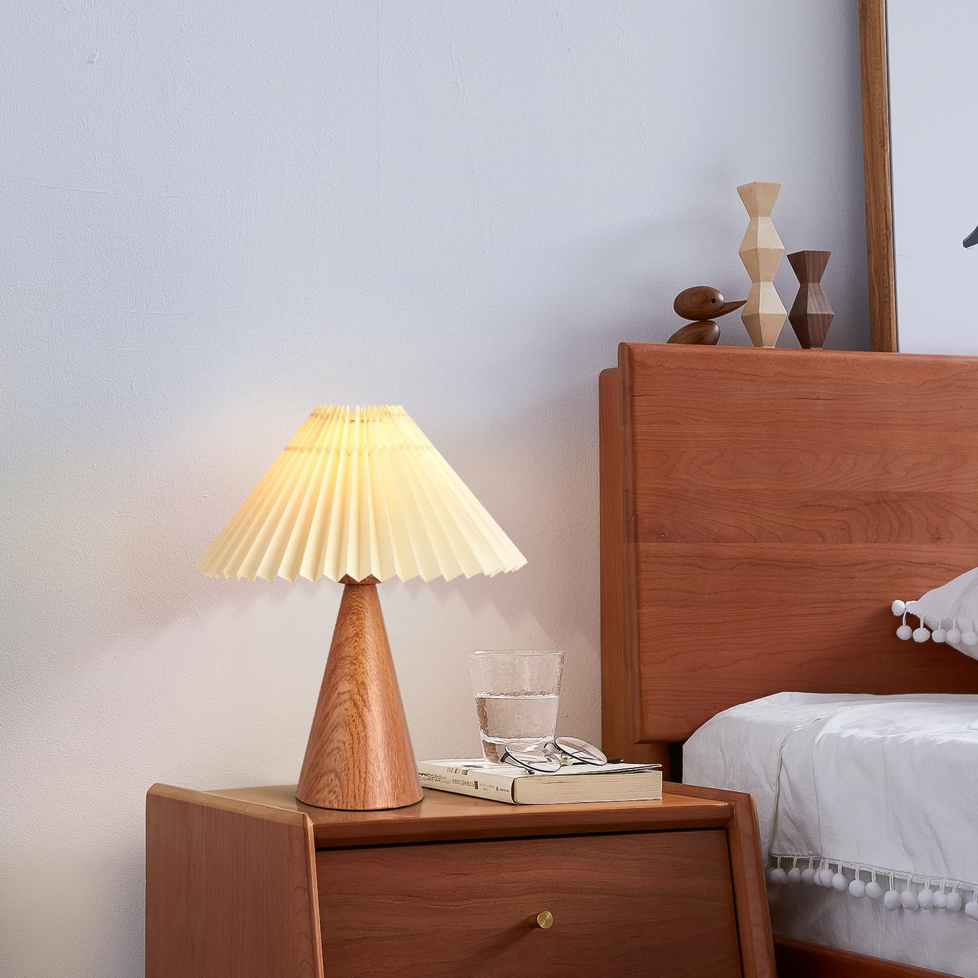 Ziqqeelam Wood Grain Small Table Lamp, Cute Table Lamp, Pleated Table Lamp, Wooden Bedroom Lamps For Nightstand, Small Scalloped