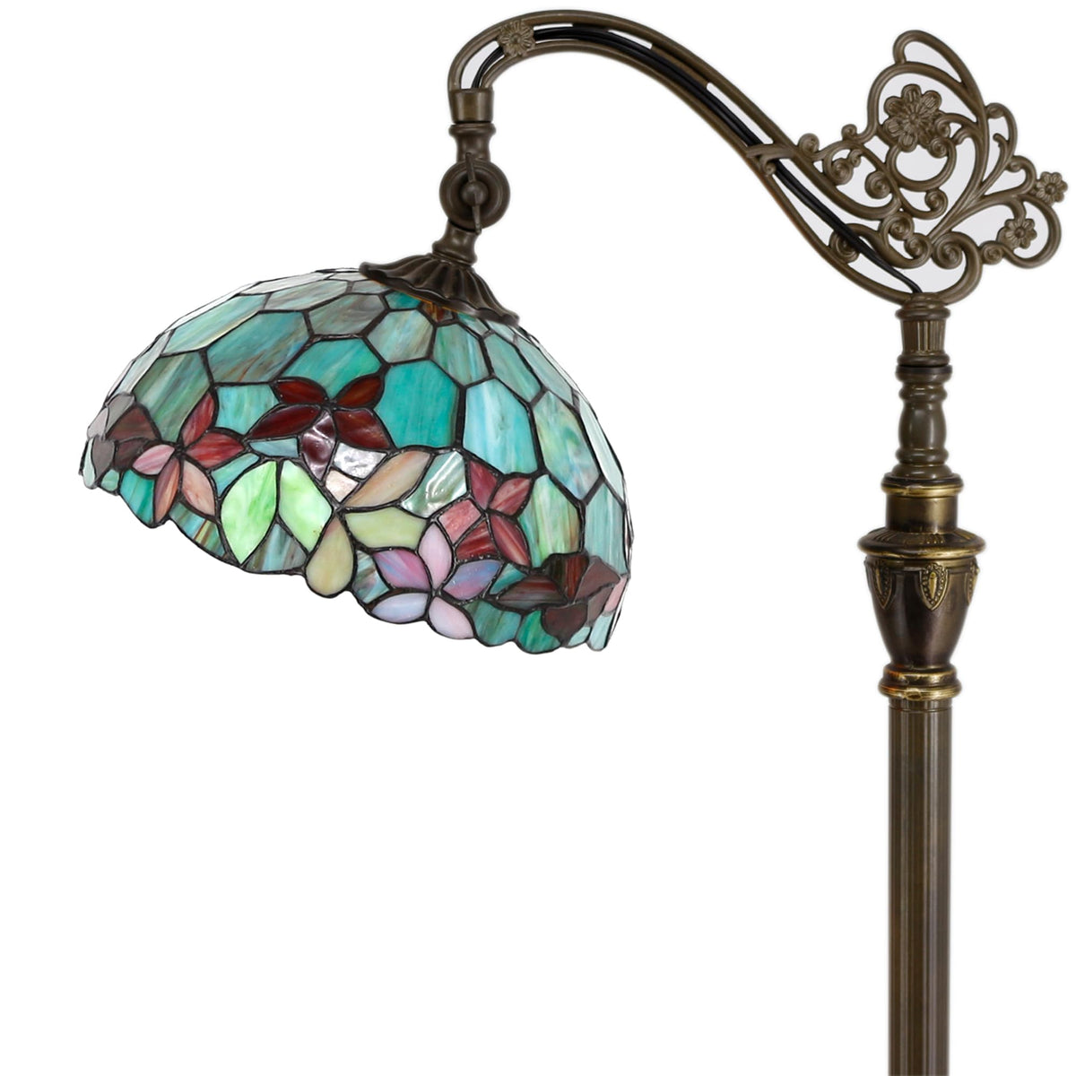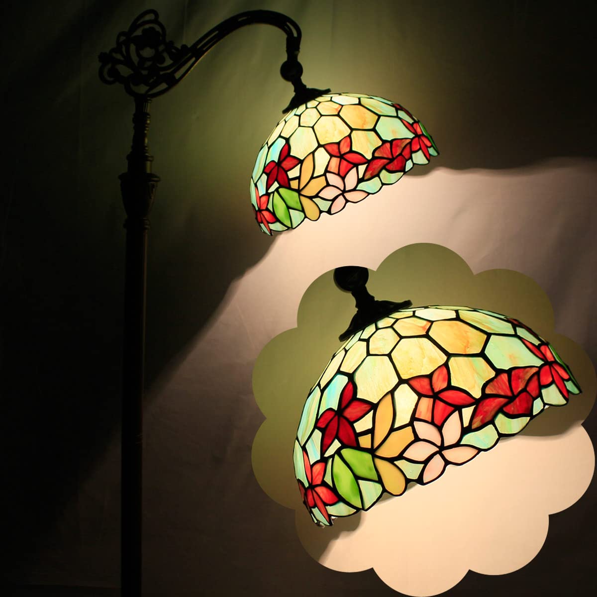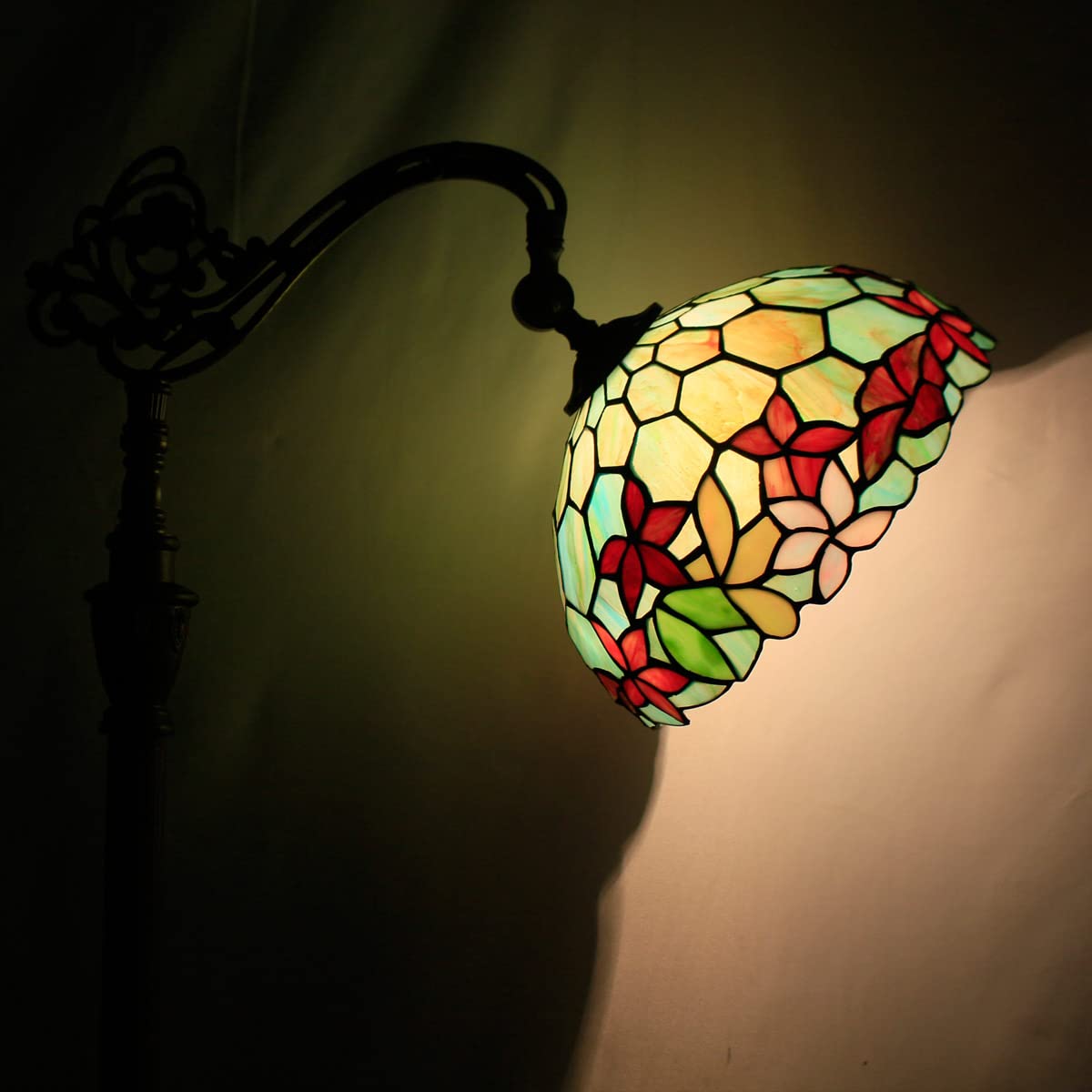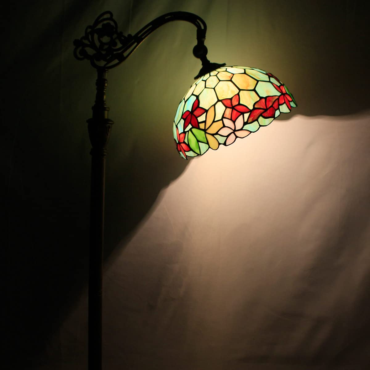 Zjart Tiffany Floor Lamp Stained Glass Lamp 18.88X12X67 Inch Angle Adjustable Arched Gooseneck Antique Reading Light (Red Green