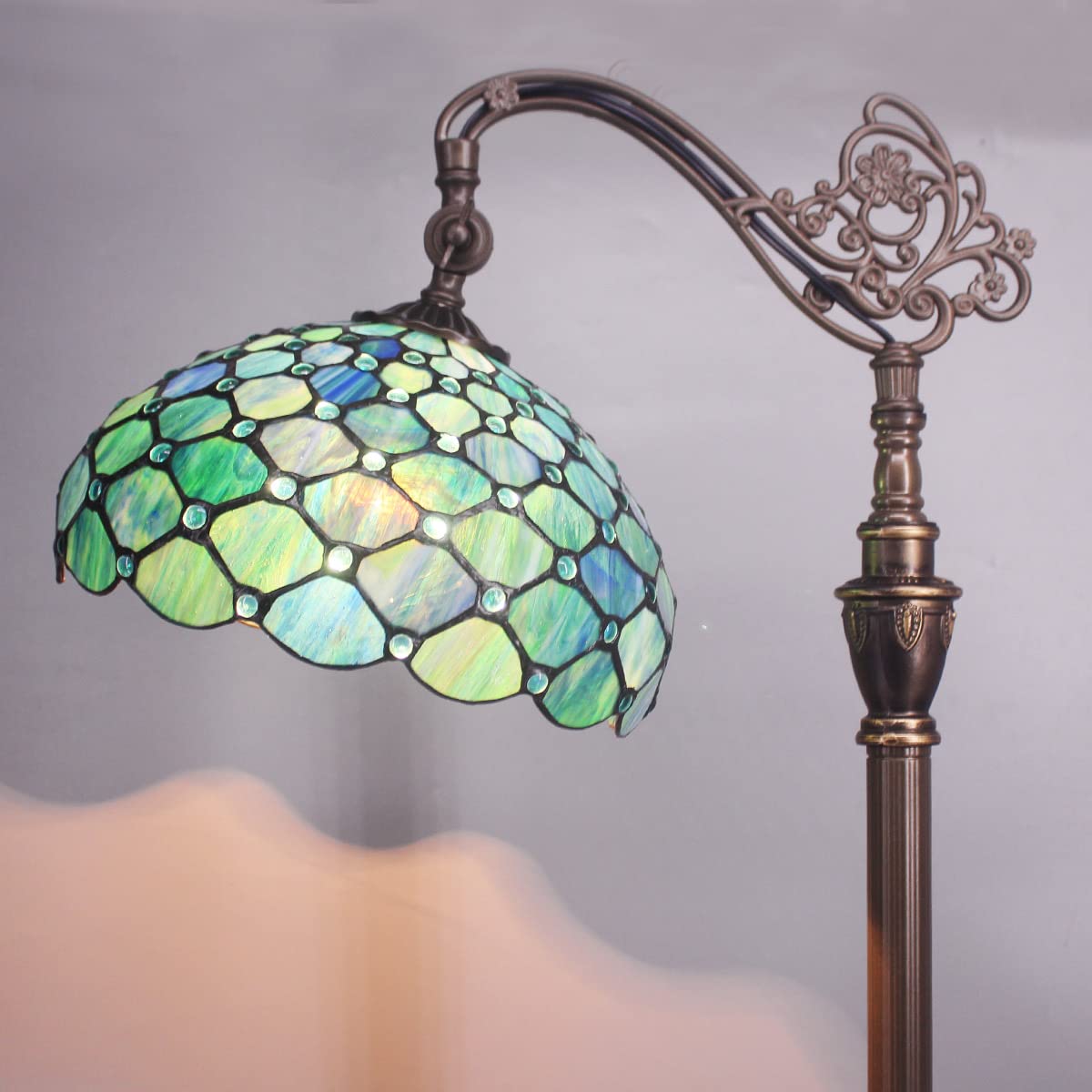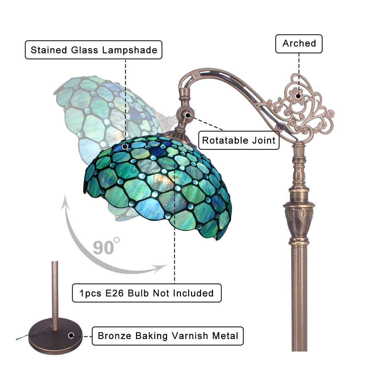 Zjart Tiffany Floor Lamp Stained Glass Lamp 18.88X12X67 Inch Angle Adjustable Arched Gooseneck Antique Reading Light (Sea Blue P