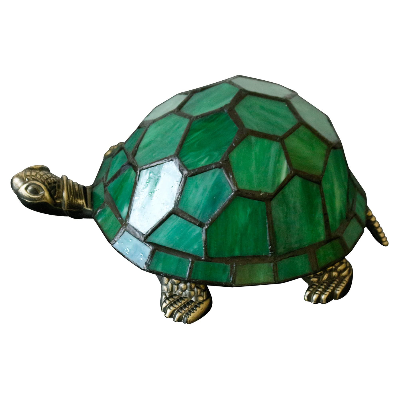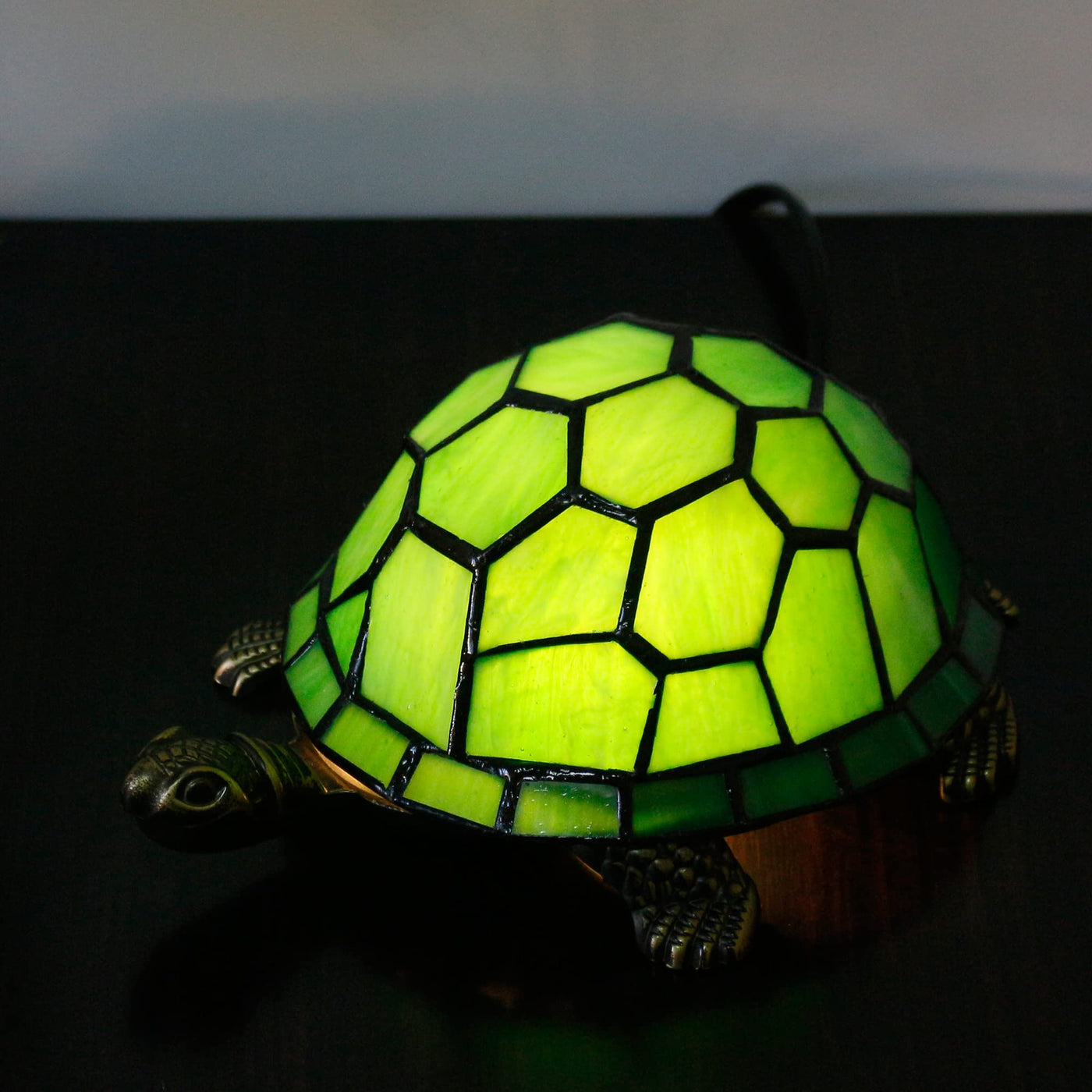 Zjart Tiffany Tortoise Lamp Small Stained Glass Turtle Desk Lamp 8X5X4 Inch Animal Antique Accent Table Light (Green Turtle)