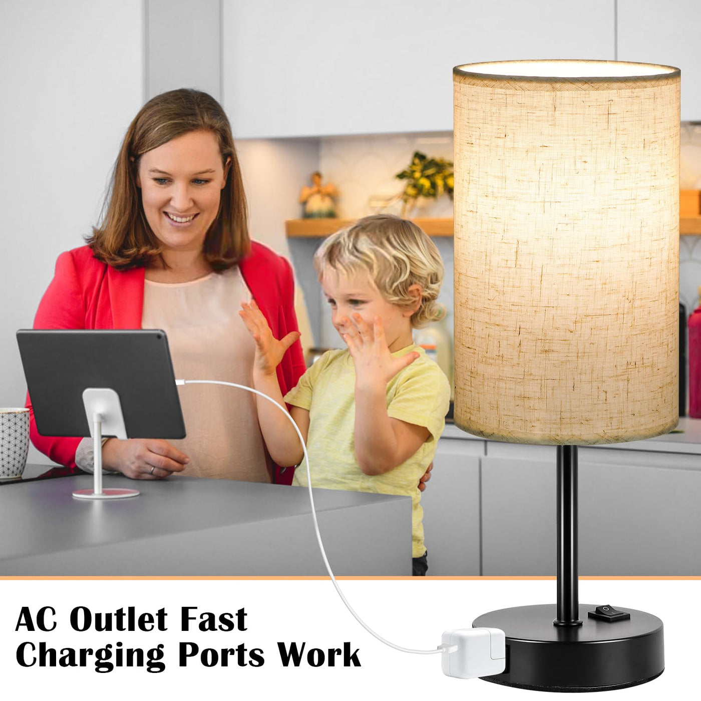 Q: Is the lampshade safe for children?A: Absolutely. The lampshade of the ZJOJO Table Lamp is made from linen material that provides a soft glow, protecting eyesight, especially for children. Additionally, it is sturdy enough for kids to safely draw on it, promoting their practical skills.