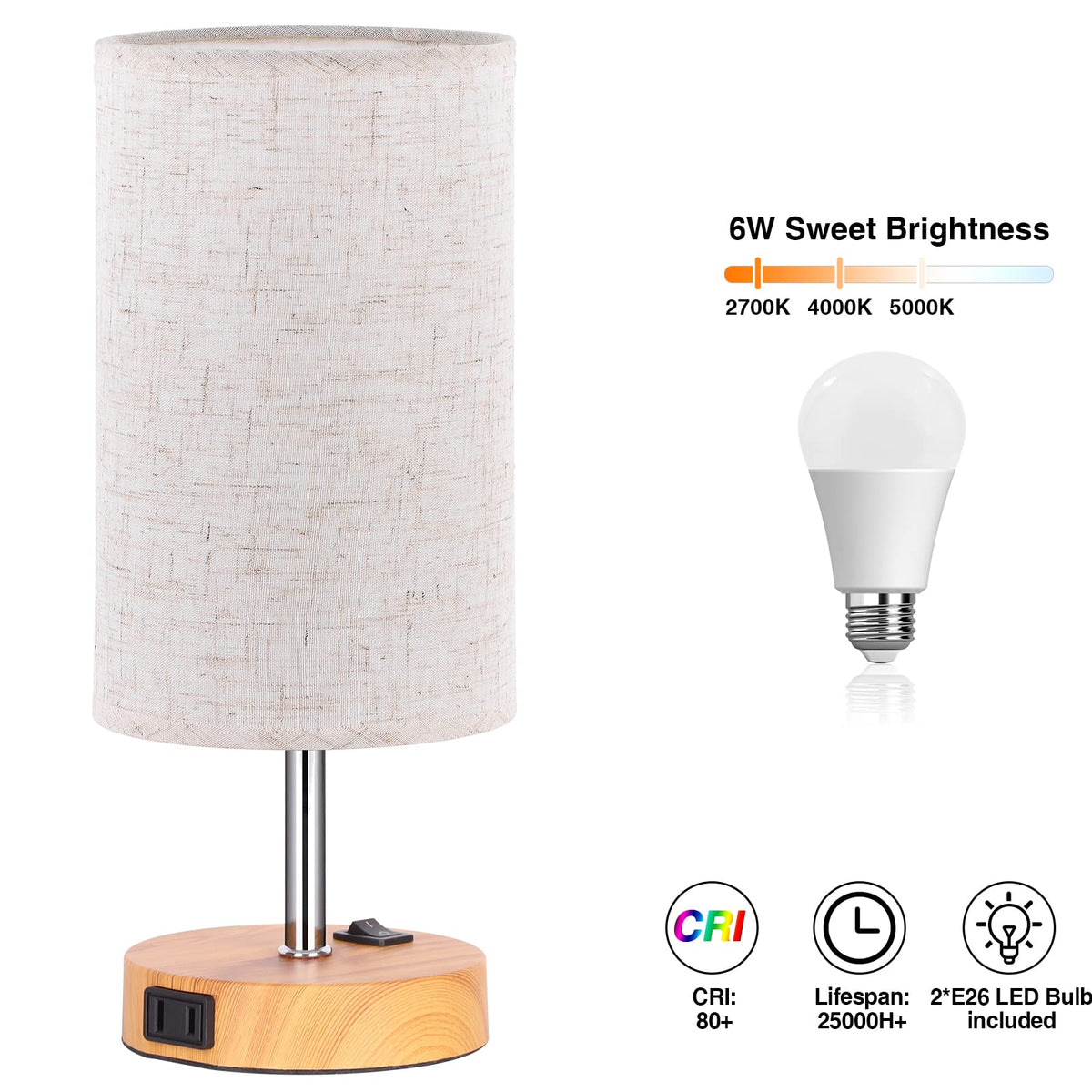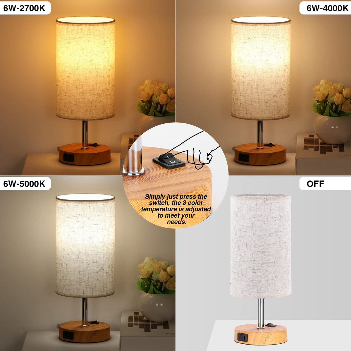 Zjojo Table Lamp Bedside Lamps For Bedroom, Bedside Lamps Set Of 2 With 3 Way Dimmable Using Rocker Switch Nightstand Lamp Night