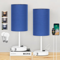ZJOJO Small Lamp Set of 2 Table Lamps with 2 AC Outlet, 3-Way Dimmable Nightstand Lamps for Bedroom Living Room Nursery, Bedside lamps set of 2 5000K Daylight Bulbs Included